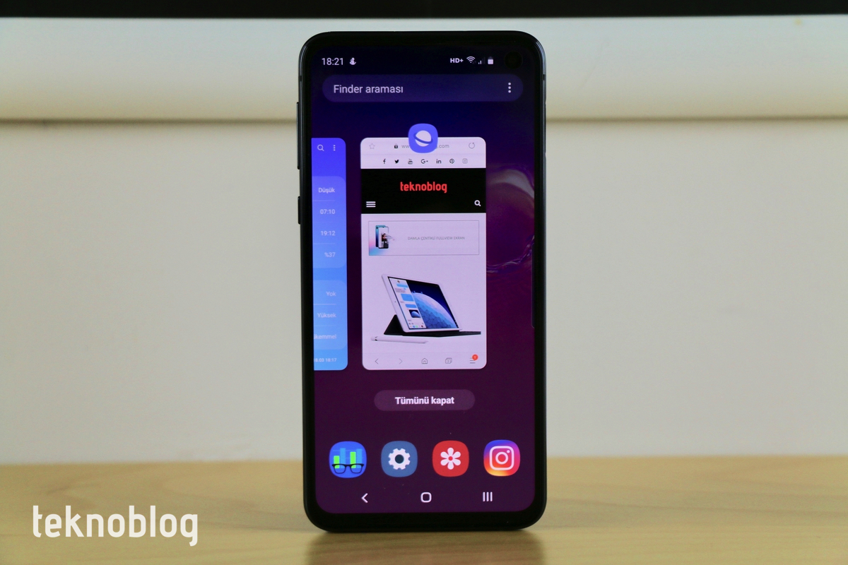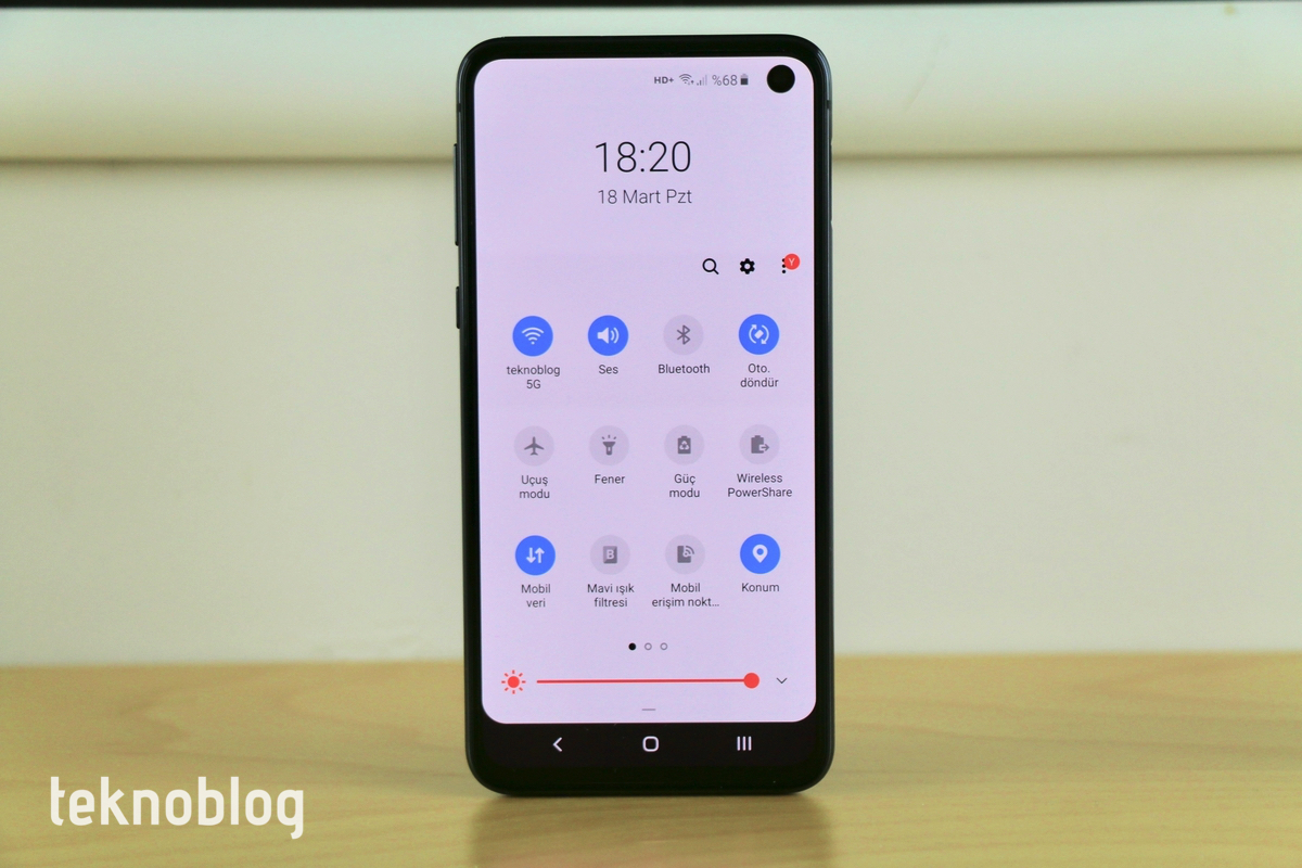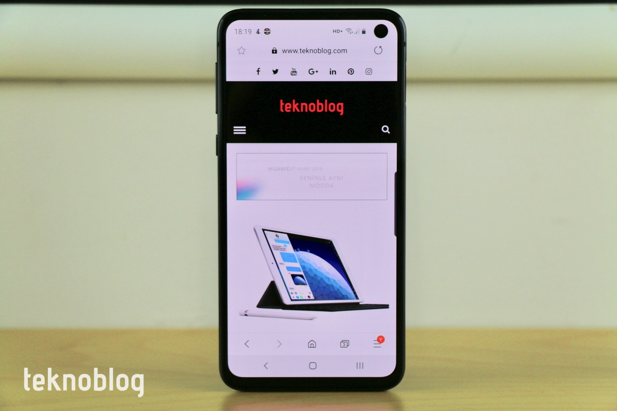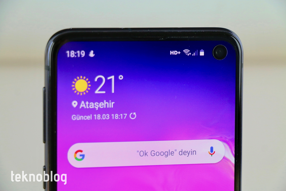 Galaxy S10e’nin ekranıyla ilgili olarak bir öncek bölümde biraz detay verdik. 5.8 inçlik, sağ üst köşesinde delik barındıran ekran, 1080 x 2280 piksel çözünürlüğe sahip. Bu da 438 ppi gibi bir piksel yoğunluğuna karşılık geliyor. S10 ve S10+ modellerinde daha yüksek çözünürlüklü ekranlar var. Eğer yan yana koyup karşılaştırma yaparsanız, onların ekranlarının daha keskin olduğunu fark edebilirsiniz. Ancak Galaxy S10e’nin daha küçük alanlı ekranında 1080p çözünürlük de fazlasıyla yeterli. Yazılar ve grafikler keskin, kullanıcı arayüzü ve diğer içerikler gayet net ve temiz görünüyor.