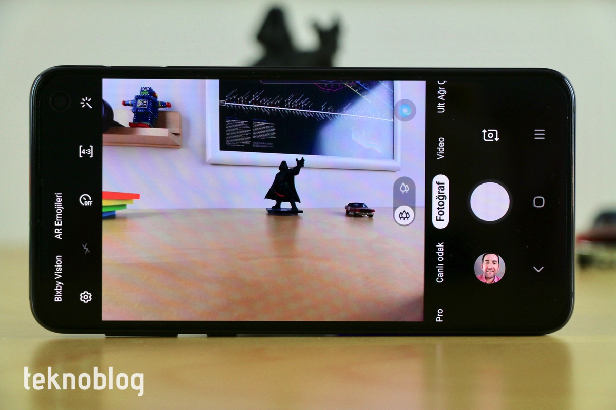 Kamera uygulaması, daha önce Note 9’dan bildiğimiz One UI kullanıcı arayüzünde gördüğümüz arayüzü taşıyor. Eskisine göre daha basit ve anlaşılır, aynı zamanda kullanması kolay bir kamera uygulaması mevcut. Samsung, Kamera uygulamasında birçok yazılım tabanlı özelliği de sunuyor. Çekim önerileri, çekimleri hizalamanıza yardımcı olacak ekran kılavuzlarını sunuyor, ara sıra da en iyi çekimi sizin için tavsiye ediyor. Daha önce Note 9’da gördüğümüz Görsel zeka ve Hata tespit etme özellikleri de mevcut durumda. Bu gibi akıllı seçeneklere ek olarak HEIF formatında depolama, RAW depolama, ultra geniş şekil düzeltmesi, selfie şekil düzeltmesi ve selfilerin döndürülmeden, ön izlemede görüntülendiği gibi kaydedilmesi gibi seçenekler var.