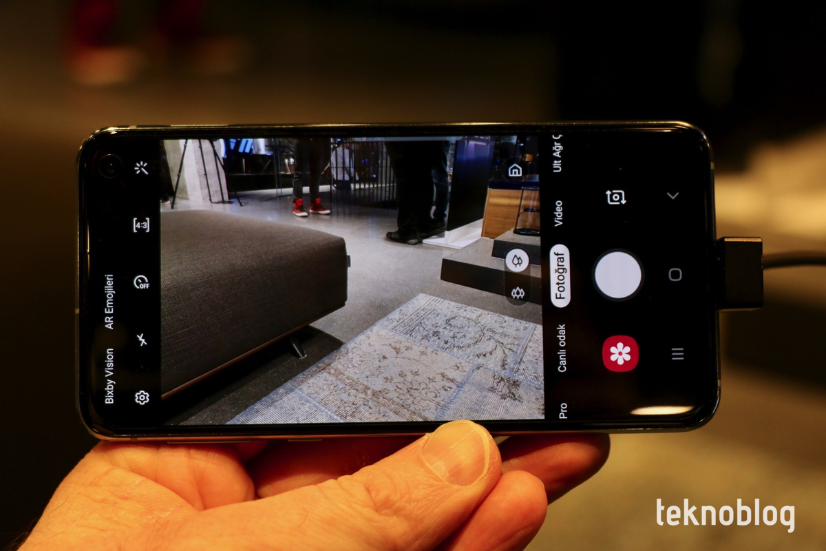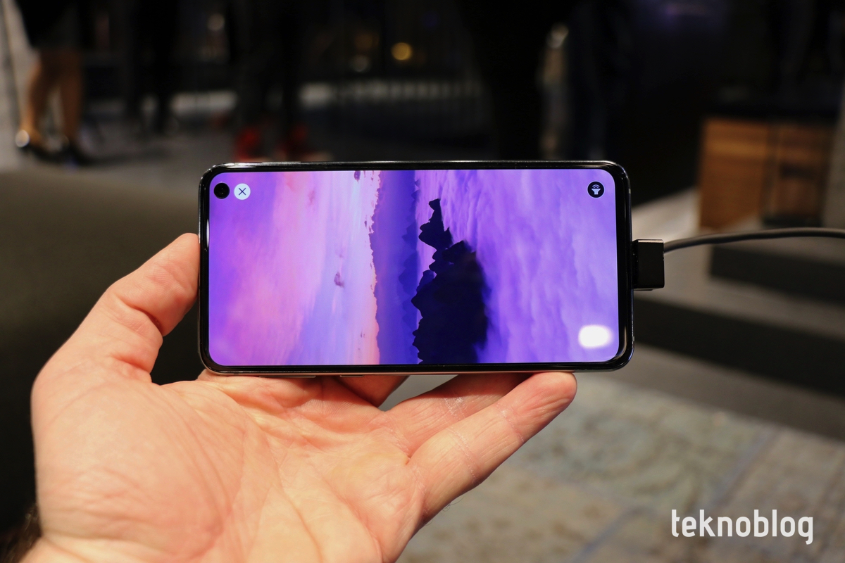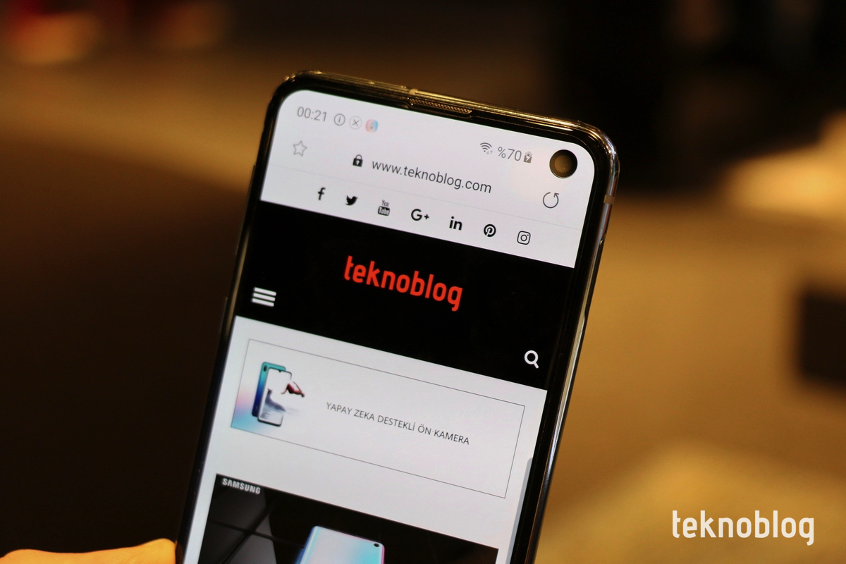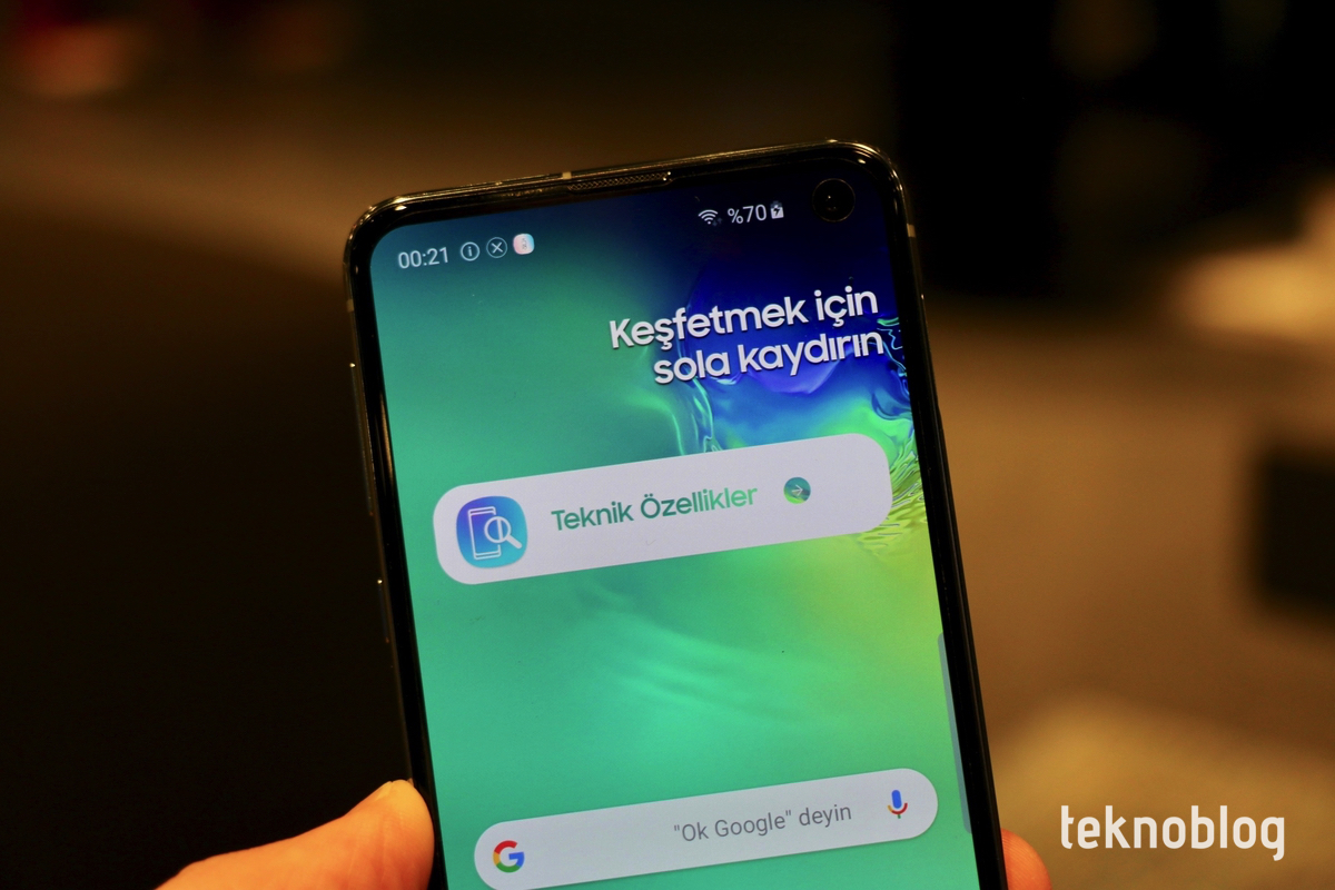 Galaxy S10e de S10’daki gibi sağ üst köşede selfie kamerası deliği barındırıyor. Sonsuz O ekrandaki bu delik, görsel açıdan çok büyük bir rahatsızlık oluşturmuyor. Ekranın köşesinde, genellikle fazla işlemeyen bir alanda olduğu için, kullandığınız süre boyunca çok fazla dikkatinizi çekeceğini düşünmüyoruz.