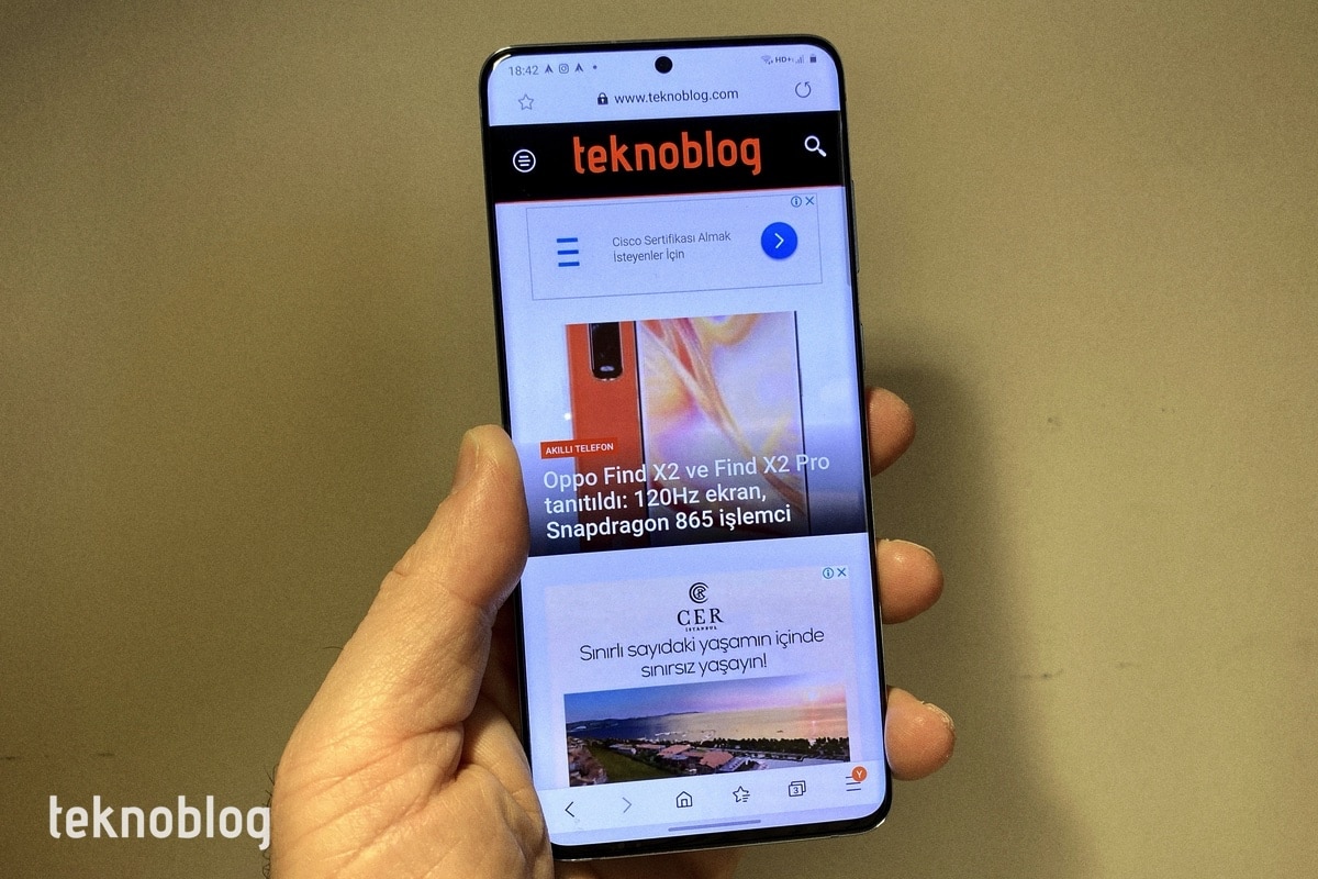 S20 Plus’ın ekranının en önemli özelliklerinden bir tanesi, serinin diğer üyelerinde olduğu gibi 120 Hz ekran. Ancak bu destekten yararlanmak için ekranı tam çözünürlük yerine Full HD+ çözünürlükte, yani daha düşük bir çözünürlükte kullanmanız gerekiyor. Daha akıcı bir ekran mı, yoksa keskin ve net bir ekran mı? Biz şu anda tercihimizi ilk seçenekten yana kullandık. Kullanıcı arayüzündeki geçişlerde veya sayfaları kaydırırken akıcılığı fark edeceksiniz. Ancak çoğu zaman bu geçişin niteliğinden daha çok içeriğe odaklanacağınız için, 60 Hz veya 120 Hz ayar kullanmak büyük bir fark yaratmıyor. Ancak söz konusu oyun oynama olunca, işler değişecektir.
