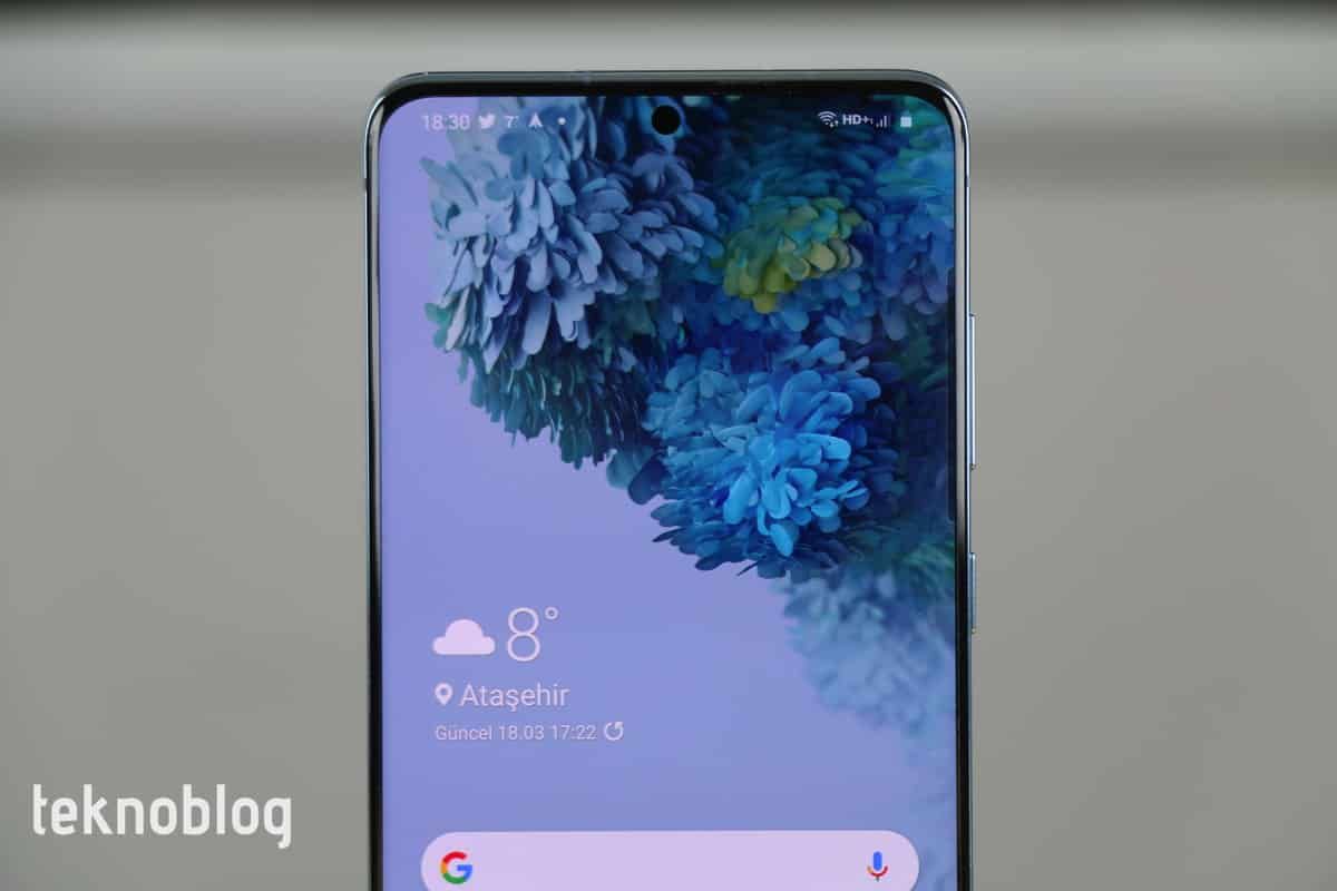Dikkat çeken bir başka ayrıntı ise ekranın kenarlara doğru kavisinin azaltılması. Galaxy S20 Plus’ta yine kavisli ekran var ama, bu kavis açısı selefindekine göre daha düşük. Neredeyse düz ekranın olduğunu söylesek yanlış olmaz. Buna rağmen, özellikle tek elle kullanım sırasında kenarlara yanlışlıkla dokunma ve istenmeyen yerleri açma gibi durumlarla ara sıra da olsa karşılaştığımızı söylememiz gerekiyor. Samsung’un bu tarafta performansı yazılımla biraz daha iyileştirmesi gerekiyor.