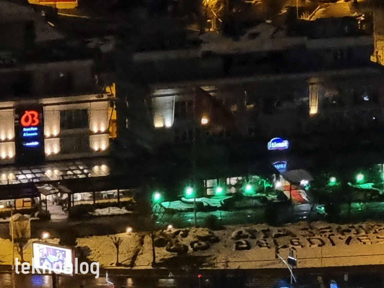 Telefoto tarafında işler değişiyor. Samsung, bu telefona iki tane telefoto kamera yerleştirmiş. Bunların ikisi de 10 megapiksel, ancak yapıları farklı. Birinci telefoto kamera 3 kat optik yakınlaştırma imkanı sunuyor, f/2.4 diyafram değerine sahip. İkinci telefoto kamera ise periskop yapılı ve 10 kat gibi yüksek bir optik zum yeteneğine sahip. Her iki telefoto lens de optik görüntü sabitleme özelliğine sahip. Daha kısa mesafeli yakınlaştırmalarda birinci telefoto kamera devrede olurken, ikinci telefoto kamera yakınlaştırma derecesi artırıldığında devreye giriyor. S21 Ultra’nın bu iki telefoto kamerasının Samsung’un övündüğü yüksek zum yeteneğini daha iyi noktalara getirdiğini söyleyebilirim. Galaxy S20 Ultra ve Note 20 Ultra modellerinde sunulan süper zum yetenekleri pek de kullanışlı görünmüyordu. Ancak Galaxy S21 Ultra, 100 kat yakınlaştırma yaptığımda, detayları yine çok netleştirmese de, daha anlaşılır biçimde sunuyor.