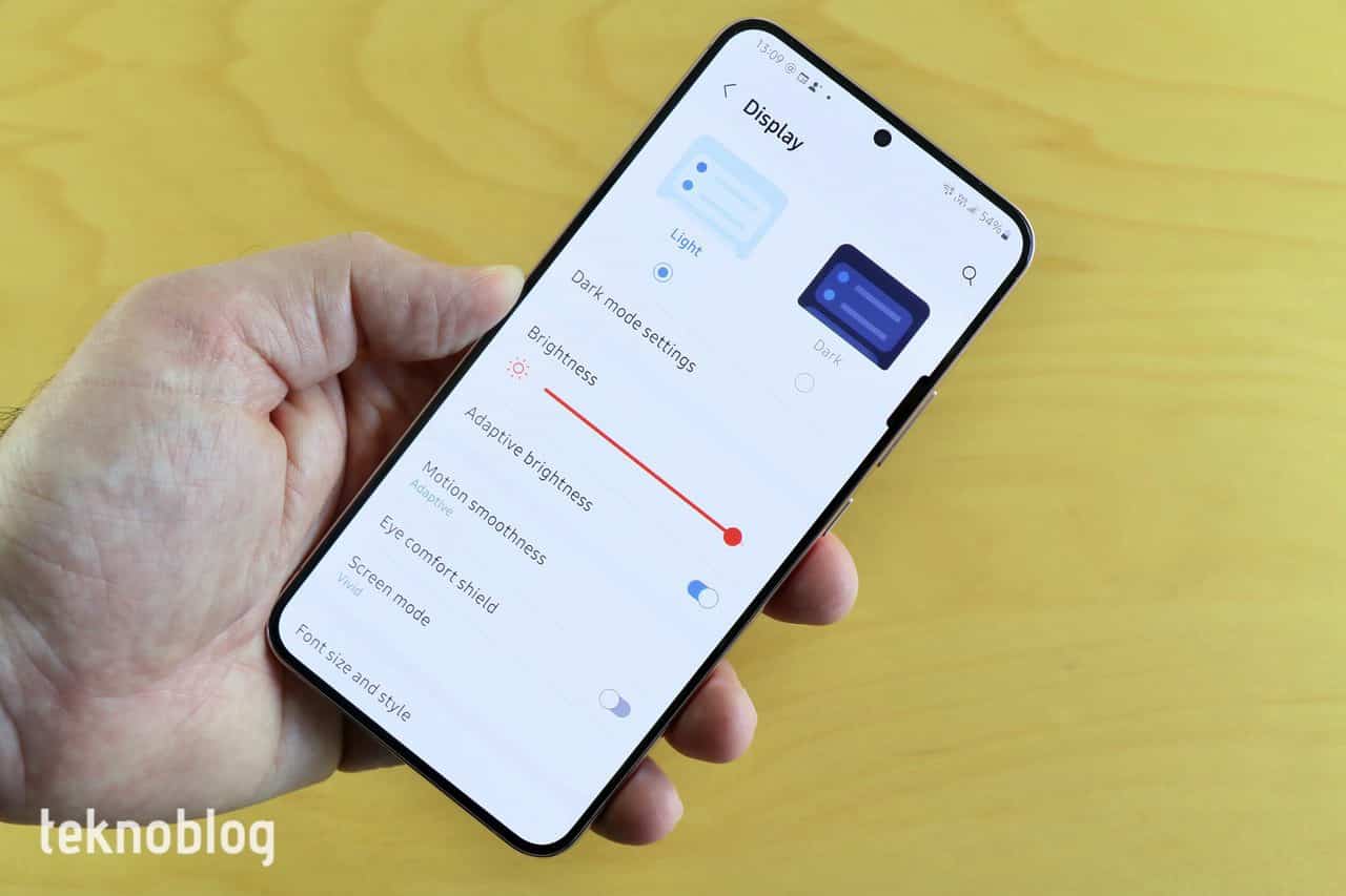 Samsung’un geliştirdiği alanlardan bir tanesi de ekran parlaklığı oluyor. 1750 nitlik maksimum parlaklık var. Normalde varsayılan ayar olarak ekranın parlaklığı ortamdaki ışık şiddetine uyarlanıyor. Bununla birlikte ekran ayarları içinde, ekran parlaklığını daha da artırmanıza olanak sağlayan özel bir ayar da bulunuyor. Yüksek parlaklık sayesinde S22 Plus’ı içeride veya dışarıda rahatlıkla kullanabilirsiniz.
