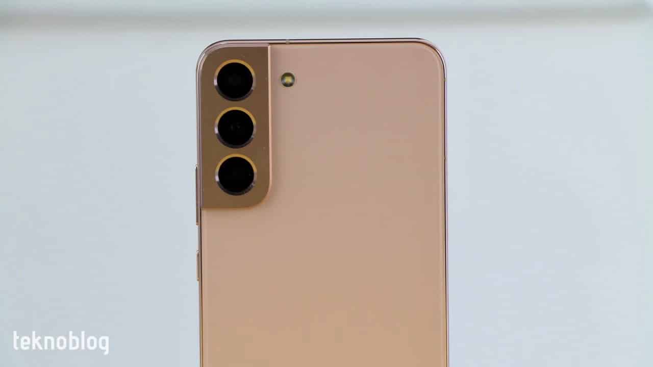 Telefonun önü ve arkası Corning Gorilla Glass Victus+ camla kaplı. Bu camın özellikle düşmeyle bağlantılı çatlamalara karşı korunaklı olduğu söyleniyor. Bununla birlikte, S22 Plus’ı kullandığımız üç haftalık süre boyunca dikkate değer bir çizik görmediğimizi söylemeliyiz. Telefonun arka yüzü yumuşak, bununla birlikte hafif de olsa pürüzlü bir yüzeye sahip. Bu durum telefonu tutmayı kolaylaştırıyor. Mat yüzey, parmak izi ve kire karşı dirençli görünüyor. Kamera modülü geçen yılın S21 Plus ve S21 modellerinde gördüğümüze benzer bir tasarımda. Üç kamera düşey yönde sıralanıyor. Flaş ise kamera modülünün dışına yerleştirilmiş. Ancak geçen yılın modellerinden farklı olarak, metal kamera modülünün renk tonu da cam yüzeye uyum gösterecek biçimde ayarlanmış. Telefonun Phantom Black, Phantom White, Green ve Pink Gold (siyah, beyaz, yeşil, pembe altın) renkleri piyasaya çıkacak. Elimizdeki test örneği son renkte. Hoş bir altın tonunun seçildiğini ve telefonun oldukça şık göründüğünü söylemeliyiz.