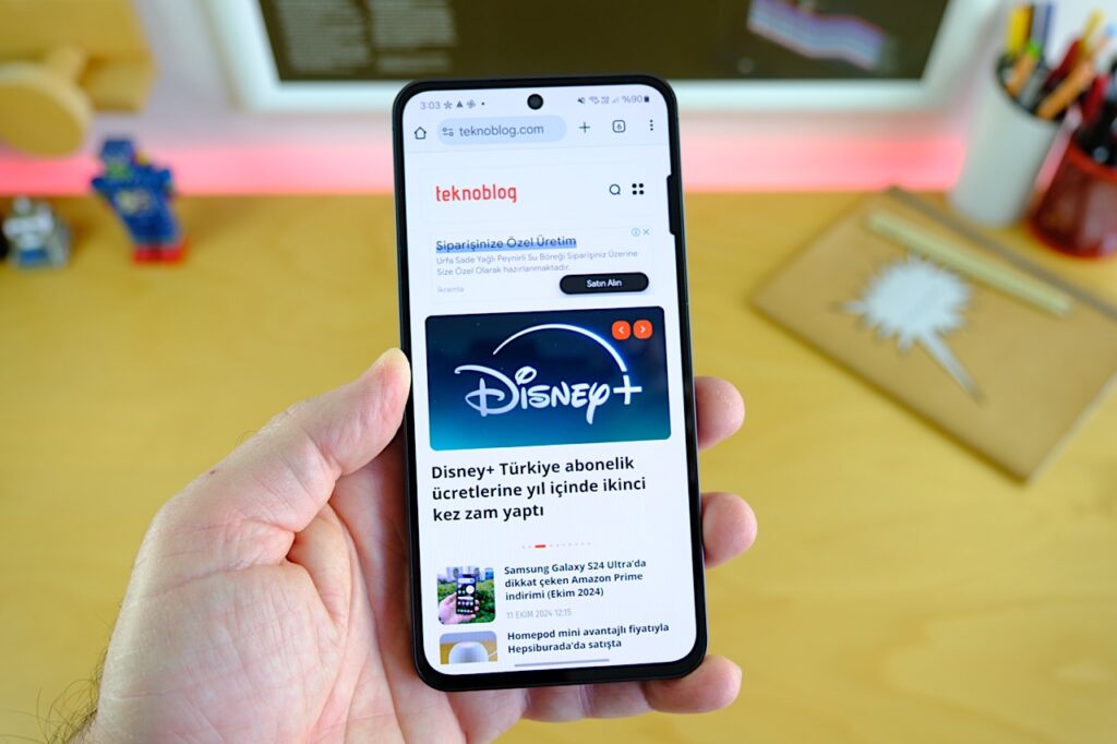 Ses performansı da Galaxy S24 FE’nin öne çıkan özelliklerinden biri. Cihazın stereo hoparlörleri, güçlü ve net bir ses deneyimi sunuyor. Özellikle Dolby Atmos desteği, sesin daha geniş bir alana yayılmasını ve üç boyutlu bir ses deneyimi yaşanmasını sağlıyor. Bu özellik, özellikle film izlerken veya oyun oynarken farkını belli ediyor. Sesin detayları çok daha belirgin hale gelirken, çevresel sesler de daha etkileyici bir şekilde duyuluyor.