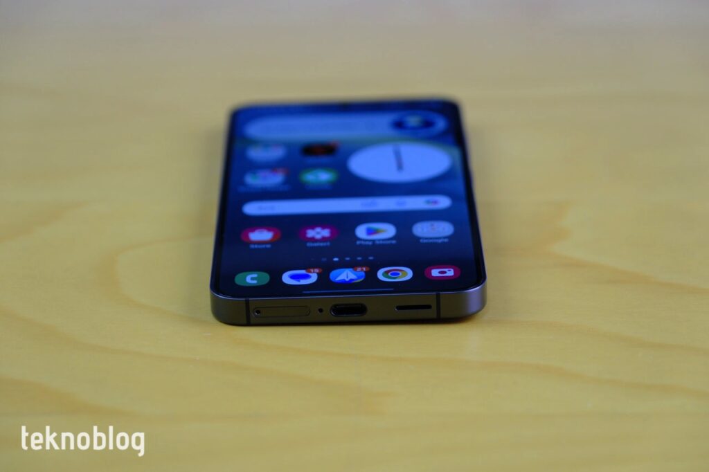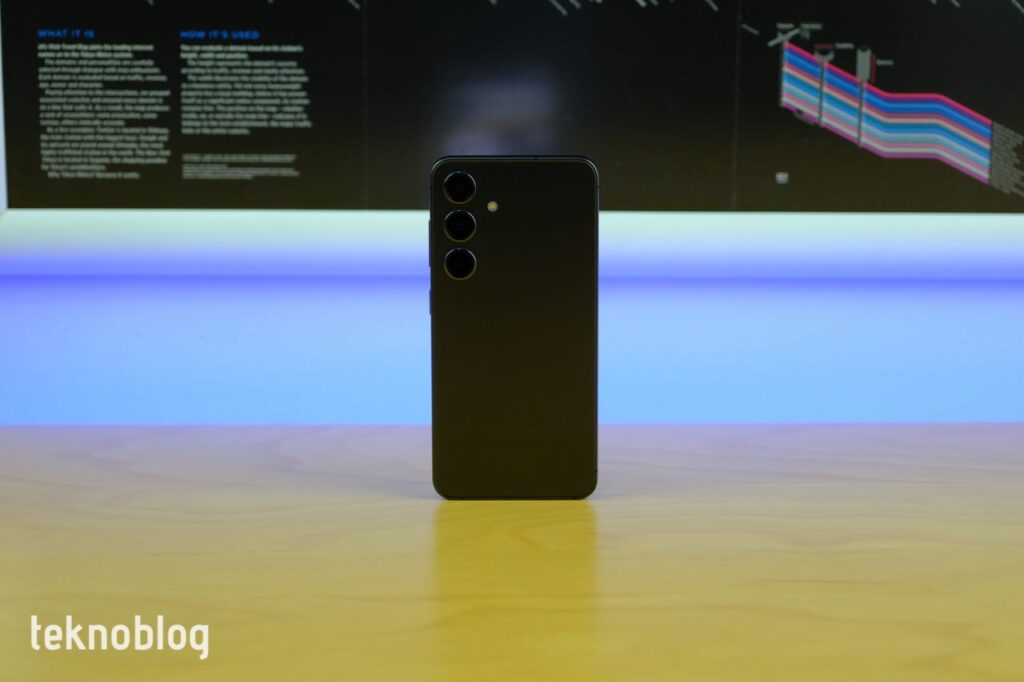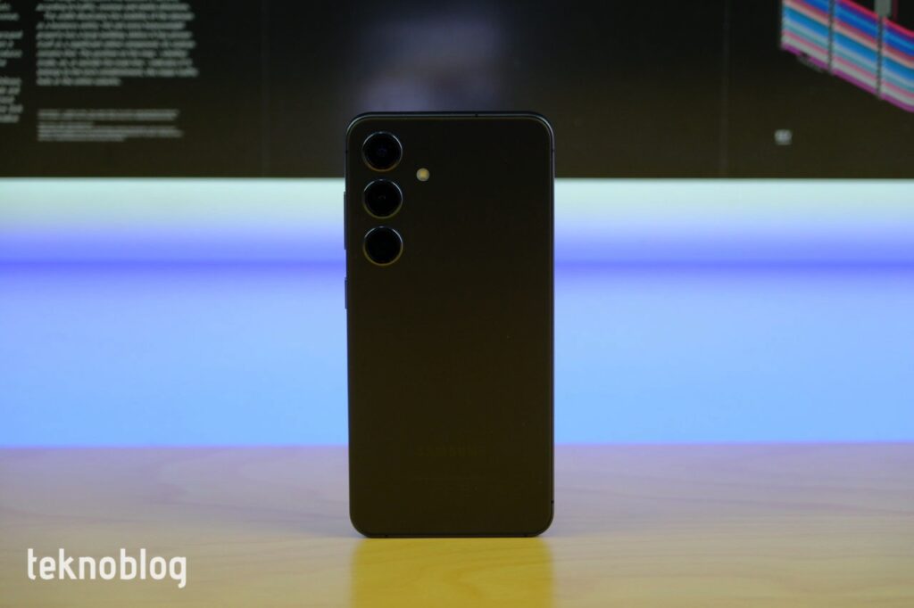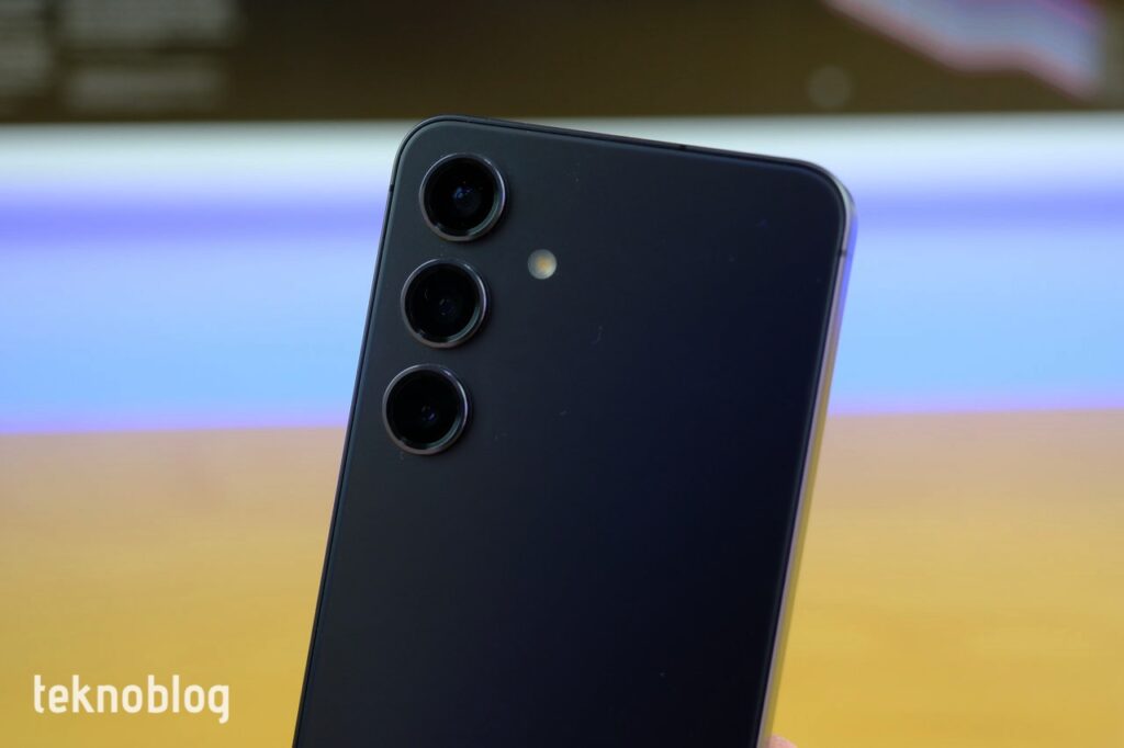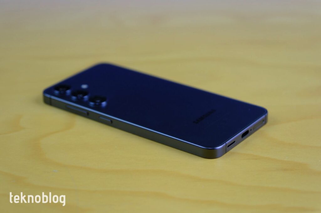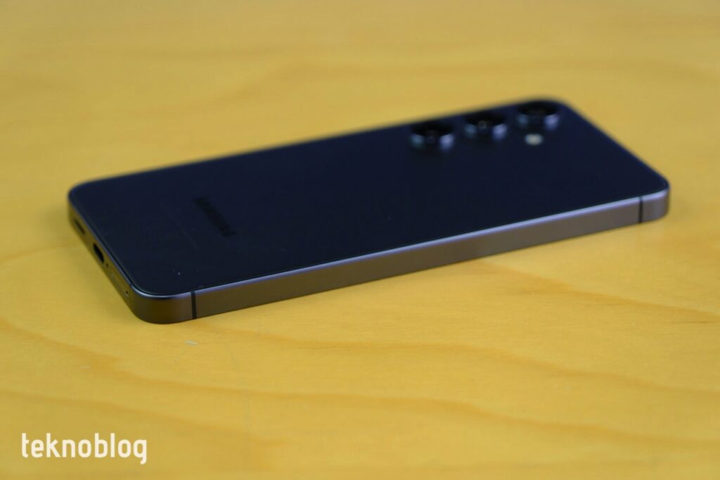 S24’ün alt kanarında USB-C portu, mikrofon, nano SIM kart tepsisi ve hoparlör bulunuyor. Burada da hoparlör yenilenmiş bir tasarımla geliyor. Hap biçimindeki hoparlör, hafif derinlik verilmiş yapısı sayesinde sesin daha düzenli biçimde çıkmasını sağlıyor. İkinci hoparlör ise ekranın üst kısmında, ahize içine yerleştirilmiş. Üst kenarda ikinci mikrofon var. Arkada ise Samsung’un simgesi hâline gelmiş kamera sistemi var. Üç kamera, düşey eksende sıralanıyor. Bu grubun hemen yanında çift renkli LED flaş var.