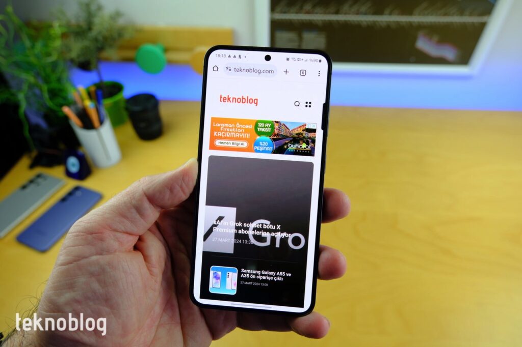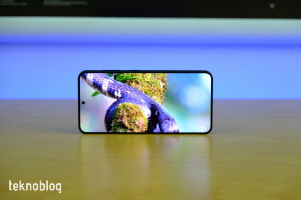 6.2 inç ekran, boyut ile optimum görsel deneyim arasında iyi bir denge kuruyor. İnce çerçeveleri sayesinde avuç içine rahatlıkla oturan telefonda web sitelerinde rahatlıkla gezebilir, sosyal medya uygulamalarını sorunsuz kullanabilirsiniz. Aynı anda iki uygulamayı bölünmüş pencerelerde kullanmak için de yeterli alan var. Video izlemek için de bu ekranın büyüklüğü yeterli. Video demişken, S24’ün ekranı HDR10+ desteğine sahip. YouTube, Netflix gibi platformlarda HDR videoları hakkını vererek izleyebilirsiniz. Gerçekten de telefonun ekranı iyi bir HDR deneyimi sunuyor. Özellikle Netflix’teki HDR içeriklerde bunun hakkı veriliyor. Oyun tarafında da iyi bir görsel deneyim var. Ekranın üst kısmında, ortaya yerleştirilmiş selfie kamera da fazla alan kaplamadığı için rahatsız edici olmuyor.