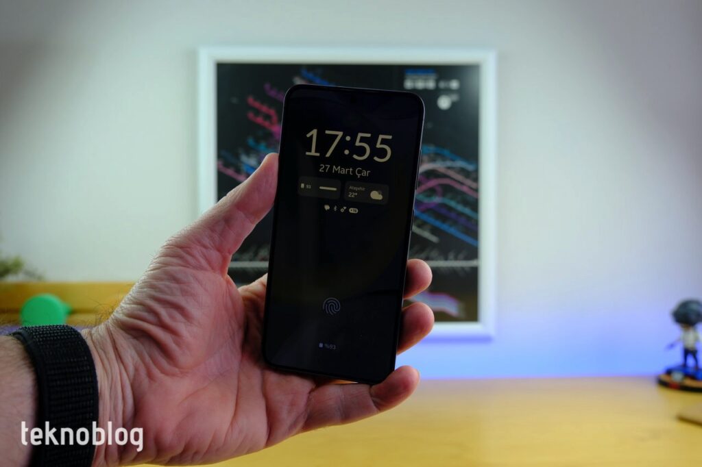 Bu telefonun ekranı da Dinamik LTPO AMOLED 2X teknolojisine sahip. 120 Hz yenileme hızı var. Yenileme hızı, ekrandaki içeriğe göre uyarlanıyor, bu da pil ömrü ile arada iyi bir denge kurulmasını sağlıyor. LTPO teknolojisiyle birlikte Always on Display özelliği daha verimli kullanılabiliyor. Samsung bu yıl, Apple’ın iPhone 14 Pro ve 15 Pro modellerinde gördüğümüz Hep Açık Ekran özelliği gibi bir kullanıma yer veriyor. Always on Display’i eskisi gibi klasik olarak kullanmanın yanı sıra, Kilitli ekran içindeki saatin, tarihin, araç takımlarının ve duvar kağıtlarının karartılmış biçimde gösterildiği bir görünümü de seçebiliyorsunuz. Tabii ki, bu tercih daha fazla pil kullanımı demek, ancak yüzde 100’lük bir kullanımda bunun tüketimi yüzde 7-8 ile sınırlı kalıyor. Her gün telefonu şarj etmek gibi bir imkanınız varsa, bu pratik kullanım için bu kadar pili harcamaya değer gibi görünüyor.