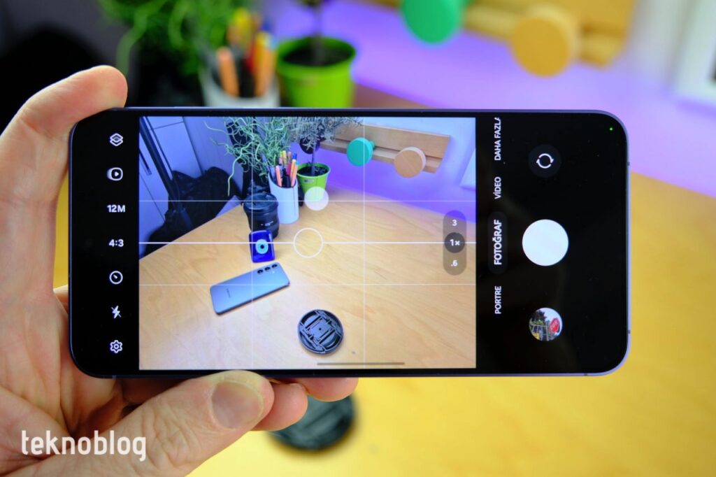 Galaxy S24+’ın Kamera uygulaması, One UI 6 güncellemesiyle gelen sadeleştirmeleri içeriyor. Portre, Fotoğraf ve Video modları ön plandayken, Pro fotoğraf ve video modlarıyla Yemek ve bunun gibi çeşitli çekim modları Daha Fazla bölümüne taşınmış. Ekranın bir kenarında filtreler, hareketli fotoğraf, zamanlayıcı, flaş gibi kontroller var. Ayrıca çözünürlük ve görüntü oranı kontrolleri de burada. Bu sayede 50 megapiksel tam çözünürlük ayarına kolayca geçiş yapılabiliyor. Yakınlaştırma kontrolleri de çekim tuşunun hemen yanında yer alıyor. En fazla 30 kata kadar yakınlaştırma imkanı bulunuyor.