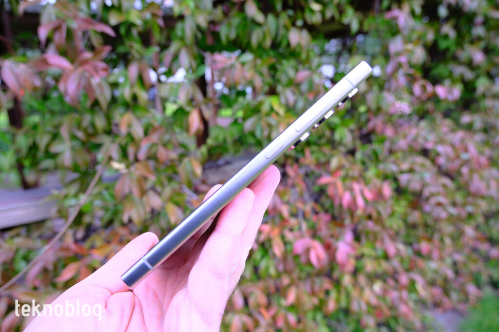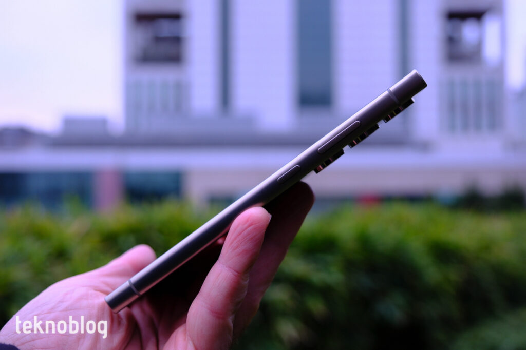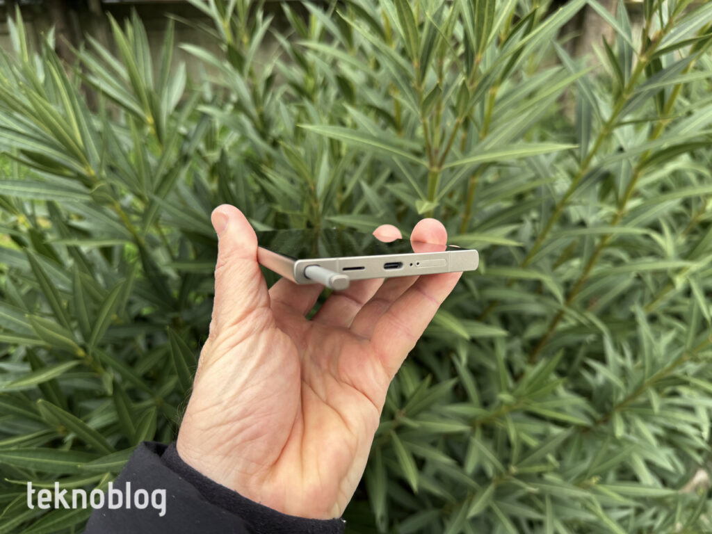 Galaxy S24 Ultra’nın tuş ve diğer bileşenlerinin yerleşimi ile ilgili olarak çok fazla değişiklik yok. Sağ tarafta ses ve güç tuşları var. Bu tuşlar dışa doğru yeterli çıkıntıya sahip. Tuşların sertliği ve derinliği de dengeli. Bunları el yormadıyla rahatlıkla bulabilir ve kullanabilirsiniz. Sol kenar boş bırakılmışken üst kenarda iki mikrofon var. Alt kenarda ise, soldan sağa doğru S Pen, hoparlör ızgarası, USB-C portu, mikrofon ve nano SIM kart yuvası var. SIM kart yuvasına iki fiziksel kart takabilirsiniz. Hoparlör ızgarası da geçen yıla göre değiştirilmiş, ince ve uzun bir yapıda, daha kullanışlı bir hâle getirilmiş.