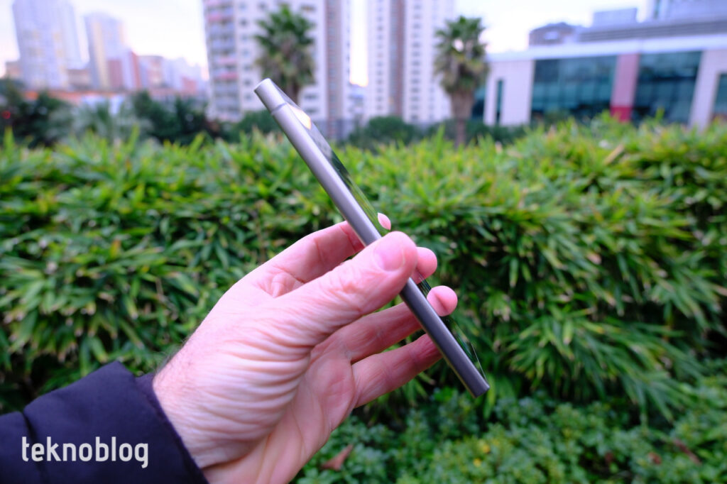 Galaxy S24 Ultra’nın yuvarlatılmış uzun kenarları telefonu rahat bir şekilde kavramaya yardımcı olmayı sürdürüyor. Üstelik Samsung, 8.6 milimetre ile profil kalınlığını azaltmış. Bunun da ergonomiye olumlu etkisi var. Samsung, geçen yıllardan farklı olarak bu yıl alüminyum yerine titanyum çerçeve kullanıyor. Titanyum, daha hafif olmasına rağmen dayanıklı bir malzeme. Titanyum ile çizilmelere ve aşınmalara karşı sağlamlık artırılıyor, ancak bu malzemenin Galaxy S24 Ultra’nın toplam ağırlığına katkısı düşük kalıyor. Bu telefon, 232 gram ile geçen yılın telefonundan ancak 2 gram daha hafif geliyor. Belki de Samsung’un, önde ve arkada, daha dayanıklı olan Corning Gorilla Armor cam kullanmasının bununla ilgisi vardır.
