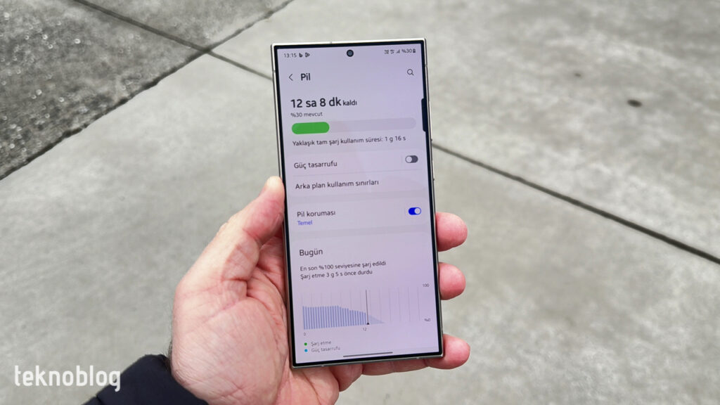 Pil tarafına geldiğimizde S24 Ultra’nın, selefi S23 Ultra ile aynı özellikler kümesini paylaştığını görüyoruz. 5000 mAh kapasiteli pil var. Bu pil, telefonu normalin çok az altı seviyede kullandığınızda 2 güne varan bir performansa ulaşabilir. Normal yoğunluklu bir kullanımda ise 24 saati rahatlıkla aşan, ikinci günün de yarısına doğru gidebilen bir performans sergileyebilir. Daha yoğun kullanımda bile sabahtan akşama bir günü tek bir şarjla çıkarmanın mümkün olacağını söyleyebilirim.