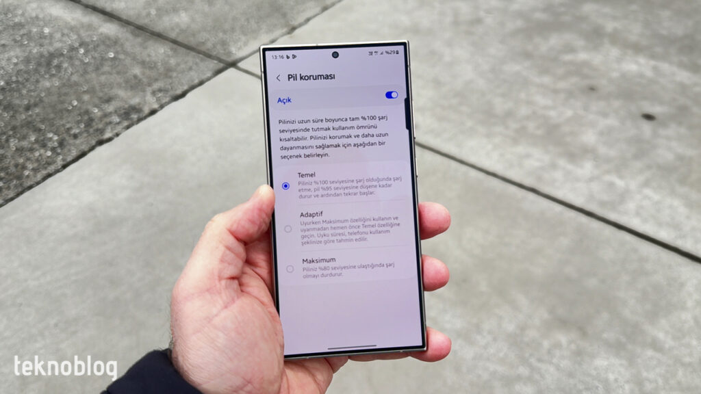 Galaxy S24 Ultra’da da iPhone 15 modellerinde olduğu gibi çeşitli pil koruma seçenekleri var. Pil ayarları içinden bunlara ulaşabilirsiniz ve açtığınız zaman pilin yüzde 100 seviyesine uzun süre kalmasını engelleyebilirsiniz. iPhone’larda olduğu gibi, burada da şarj seviyesini yüzde 80 ile sınırlama seçeneğinin bulunduğunu görüyoruz.