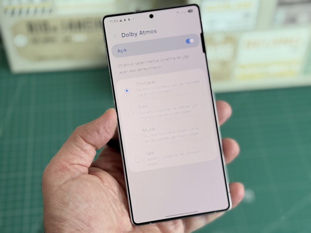 Cihazın ses deneyimi yalnızca hoparlörlerle sınırlı değil. Samsung, Dolby Atmos desteği ile daha geniş ve etkileyici bir ses deneyimi sunmayı hedeflemiş. Bu özellik, özellikle film izlerken ya da oyun oynarken çevresel ses etkisini artırıyor. Kulaklık ile kullanımda bu fark daha belirgin hale geliyor ve ses kalitesinde önemli bir iyileşme sağlanıyor. Ancak Dolby Atmos özelliğinin, bazı içeriklerde aşırı yapay bir his verebildiğini belirtmek gerek. Ses ayarlarında bu özelliği devre dışı bırakmak veya özelleştirmek mümkün. Bununla birlikte, ses profilleri arasında oyun, film ve müzik gibi farklı seçenekler sunulmuş, bu da kullanıcı deneyimini zenginleştiriyor.