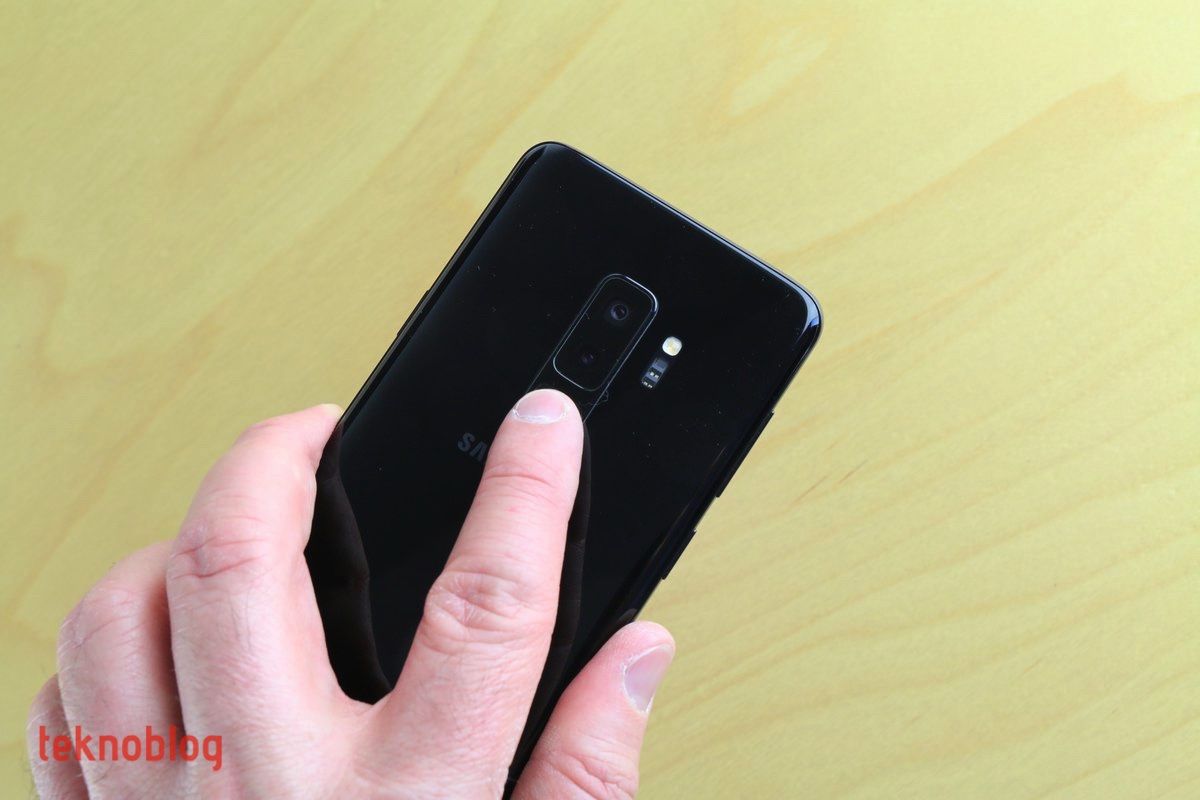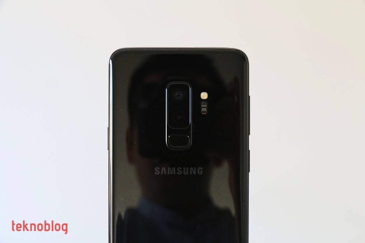 Bu yılın amiral gemisi Samsung telefonlarında, geçen yılın epey şikayet edilen sorunlardan bir tanesi giderilmiş. Önde parmak izi okuyucusu için yer kalmayınca, Samsung bunu arkaya, ancak işaret parmağının doğal biçimde temas etmediği bir noktaya yerleştirmişti. Bu yıl ise parmak izi okuyucusunun olması gerektiği gibi, telefonu en rahat şekilde tutarken işaret parmağının temas ettiği noktaya konumlandırıldığını gördük. Aslında geçen yıl parmak izi okuyucusunun yerine alışmıştık, ancak şimdiki konum çok daha fazla rahatlık sunuyor. Parmak izi okuyucusunun hemen üstünde ise düşey eksende yerleştirilmiş iki adet kamera görüyoruz. Bunların hemen sağında da flaş ve kalp hızı ölçer yer alıyor. Aslında Galaxy S9+ sadece kalp hızı ölçmekle kalmıyor, aynı bileşen yardımıyla kandaki oksijen yoğunluğu da ölçülüyor. Yüzde 100 doğrulukta olmasa da, fikir vermesi açısından yararlı bir özellik olduğu söylenebilir. Tüm bu bileşenlerin biraz altında da Samsung logosunu görüyoruz.