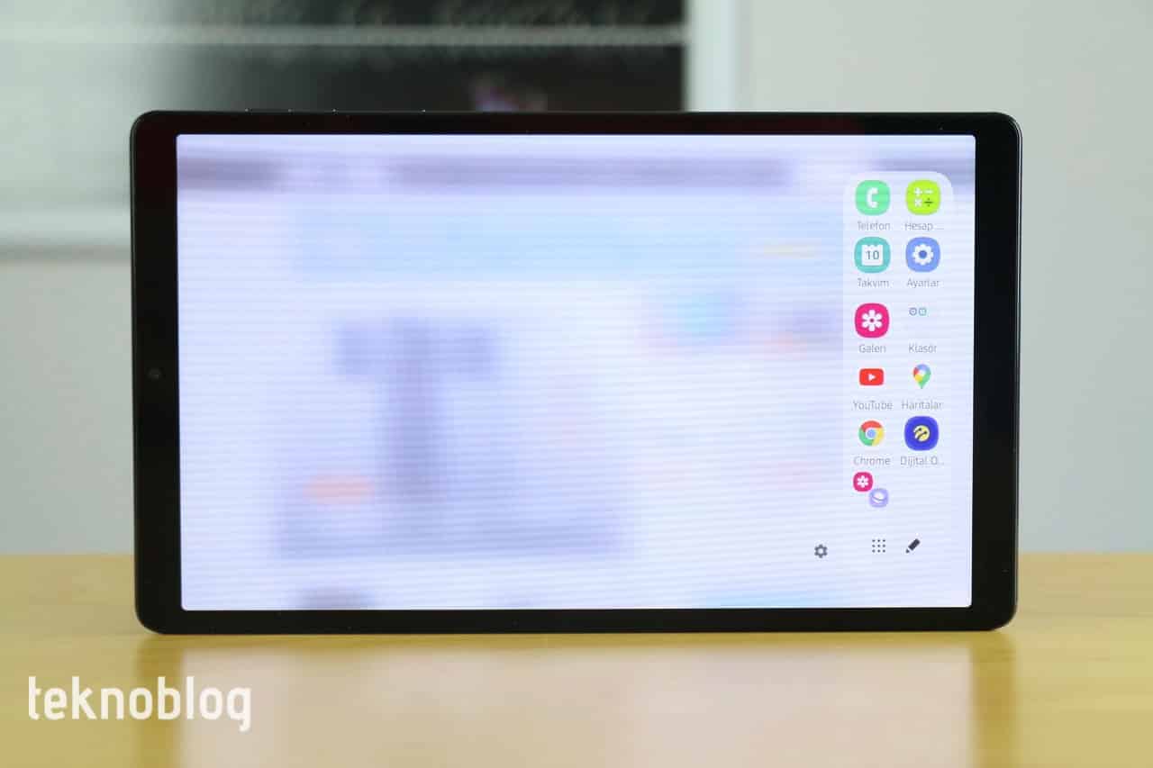 Tab A7 Lite, 5:3 ekranıyla daha çok düşey yönde kullanım için elverişli bir tablet. Bu nedenle Samsung akıllı telefonlarından alıştığımız ve çok yadırgamadığımız bir kullanıcı deneyimi var. Samsung, Google, Microsoft uygulamalarından bazıları yüklü olarak geliyor. Daha fazlasını Google Play Store veya Galaxy Store’dan indirebilirsiniz. Samsung Free veya Google Asistan panellerinden dilediğinizi de ana ekranın en soluna yerleştirebilir veya bunları tamamen kapatabilirsiniz. Samsung’un Edge paneli olarak adlandırdığı, uygulamalara hızlı biçimde erişmeyi sağlayan bir aracı da bu tablette görüyoruz. Akıllı telefonlara göre daha büyük olan ekranı, aynı anda iki uygulamayı açmaya izin veriyor. Bir yandan YouTube videosu izlerken bir yandan internette gezinme gibi kullanım senaryolarına izin veriyor. Edge panelinden uygulama menüsünü açmak biraz zaman alsa da, 3 GB RAM’in varlığına rağmen iki uygulamayı bölünmüş pencerede kullanımda performans fena sayılmaz.