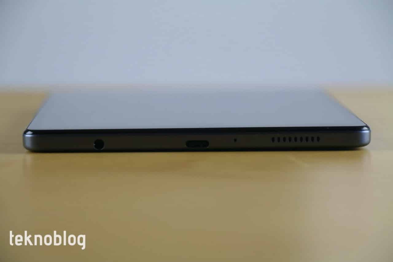 Samsung malzeme seçimi bakımından Tab A7 Lite’da kaliteden ödün vermemişe benziyor. Ön tarafı kaplayan cam panel kenarlarda alüminyum çerçeveyle buluşuyor. Arkada da alüminyumdan yapılmış bir tabaka var. Alt ve üst kenarlarda ise plastik plakalar kullanılmış. Gümüş ve gri olmak üzere iki renk seçeneği var. Elimizdeki gri renk biraz daha ağır bir görünüme sahipken gümüş rengin daha hoş durduğun ve tableti daha şık gösterdiğini söylemem gerekiyor.