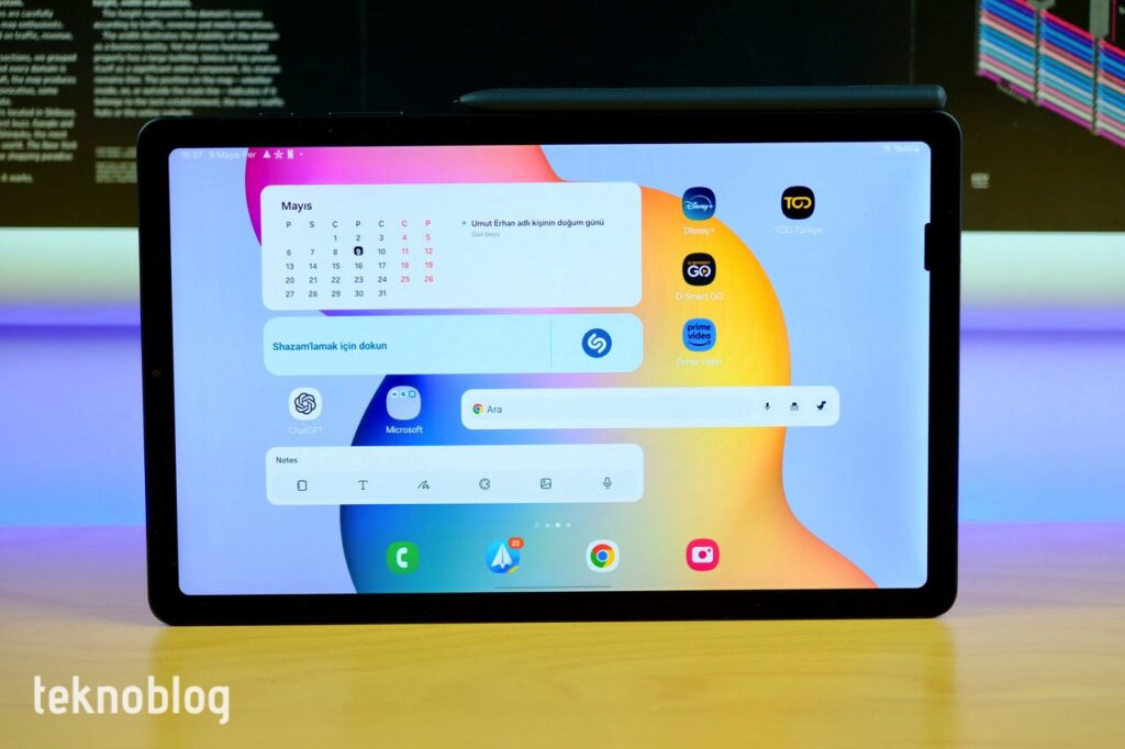 Ek olarak, kutudan çıkan S Pen sayesinde, herhangi bir ek ücret ödemeden tablet üzerinde elle not alma veya çizim yapma avantajına kavuşuyorsunuz. S Pen kalemi yeterli bir gecikme süresine sahip. Ekranda yazı yazarken veya not alırken belli bir gecikmenin olduğunu hissediyorsunuz, ancak bu durum gerçek bir kağıda veya deftere yazı yazma deneyimi yaşatmayı çok fazla engellemiyor. Samsung’un kendi Notes uygulamasının yanında, Google Play Store’dan indireceğiniz PENUP, Goodnotes gibi uygulamaları da rahatlıkla kullanabilirsiniz. S Pen’i tablete yaklaştırdığınızda ekranda imleci görüyorsunuz. Kullanıcı arayüzünde gezinti için de kalem elverişli bir ortam sunuyor.