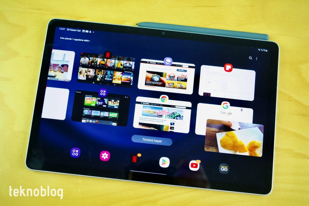 Galaxy Tab S9 FE’nin ekranı özellikle video izlemek için fazlasıyla yeterli. Bu tablette farklı zamanlarda Netflix ve YouTube videoları izledim ve sunduğu görsel kaliteden yeteri kadar memnun kaldım. Aynı anda birden fazla uygulamayı kullanma konusunda da bu tabletin sunduğu alan yeterli oluyor.