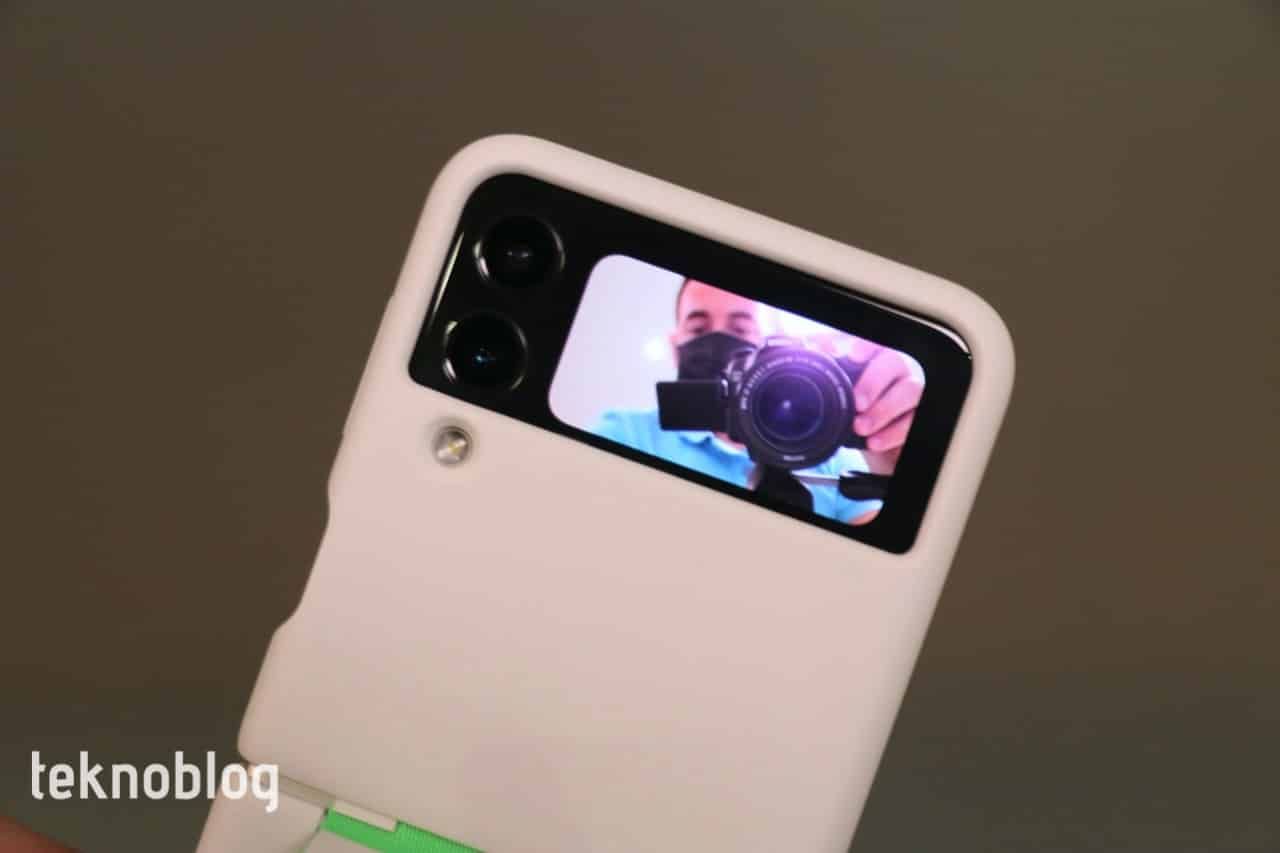 Geçen yılın modeline göre dikkat çeken yeniliklerden bir tanesi, kapaktaki ekranın büyütülmesi. Burada 1.9 inç, 512 x 260 piksel Super AMOLED ekran yer alıyor. Bu ekran yüksek parlaklığa sahip ve parlak ışık altında da iyi bir görüş sunuyor. Herhangi bir anda bu ekrana çift tıklatarak saati görebilirsiniz. Ayrıca ekran üstünde kenarlardan ortaya doğru sürükleyerek çeşitli kontrollere, widget’lara veya bildirimlere erişebilirsiniz. Böylelikle telefonun katlanabilir ekranını açmadan gelen çağrı bilgilerini veya mesaj bildirimlerini görebilirsiniz. Ayrıca ekranın büyümesi, onun ana kameralar kullanılırken selfie fotoğraf çekimi yapılmasını daha da kolaylaştırıyor. Ne de olsa büyük ekran, büyük bir vizör olarak daha iyi şekilde iş görecektir.