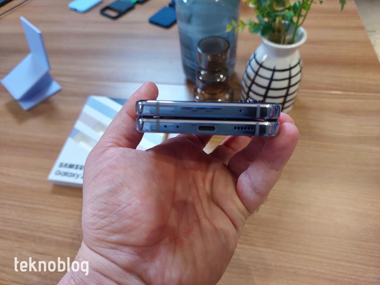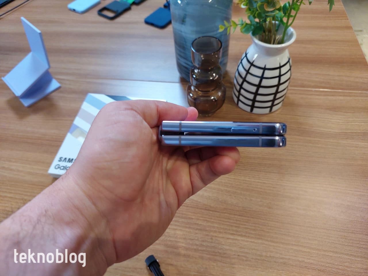 Z Flip 3 kullananları en çok korkutan konulardan birisi telefonun arka panelinin yüzeye tutunma konusunda sıkıntı yaşamasıydı. Z Flip 4’te hem kamera çıkıntısının büyütülmesi hem de arka panel kaplamasının matlaştırılması sayesinde telefon yüzeye daha iyi tutunuyor. Z Flip 4’ü cepte ve elde taşımanın da çok rahat olduğunu belirtmek gerekiyor.