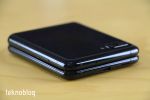 Katlanabilir ekranın etrafını nispeten kalın bir çerçeve sarıyor. Üstelik bu çerçeve ekrana göre hafif yükseltilmiş durumda. Ekran hareketlerini kullanırken bu kalın çerçevenin herhangi bir sıkıntı çıkarmadığını görüyoruz. Öte yandan altta kalan köşelere birer küçük tampon yerleştirilmiş. Böylelikle telefonu kapattığınızda çerçevenin birbirine çarpması ve aşınması önlenmiş.