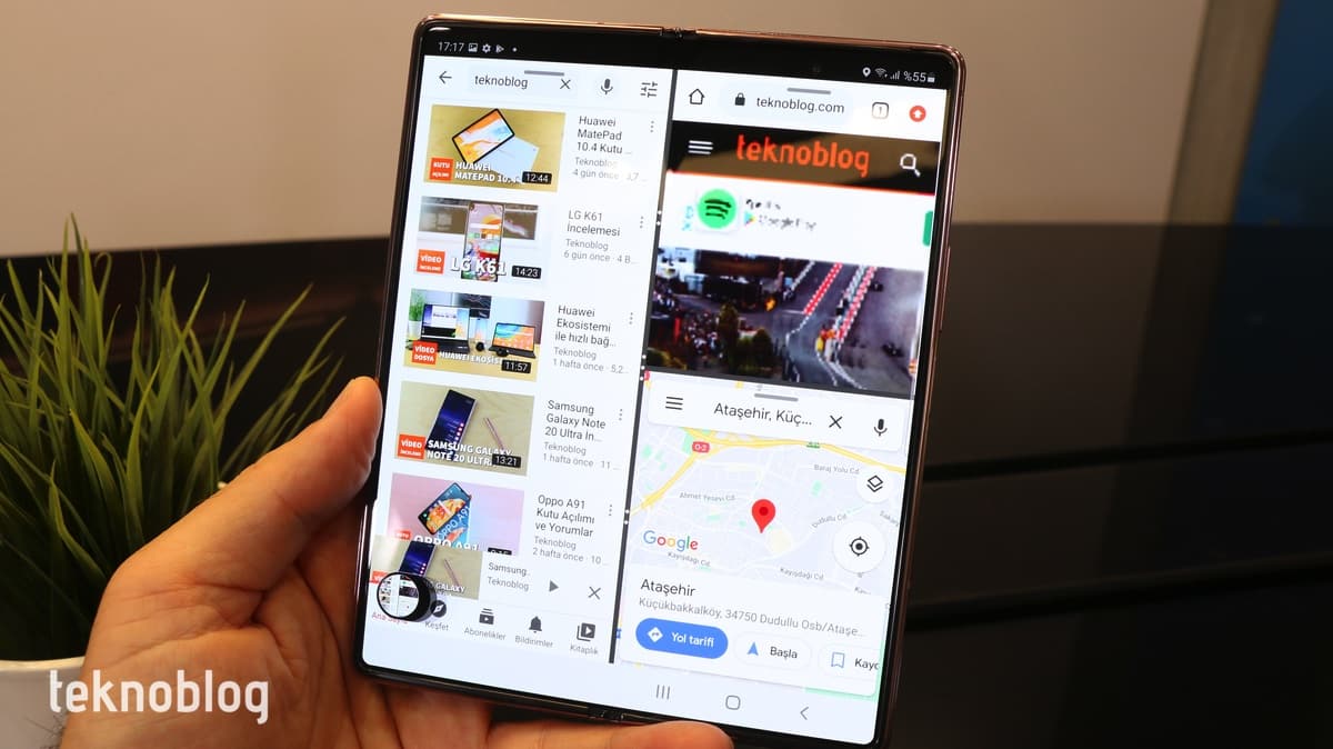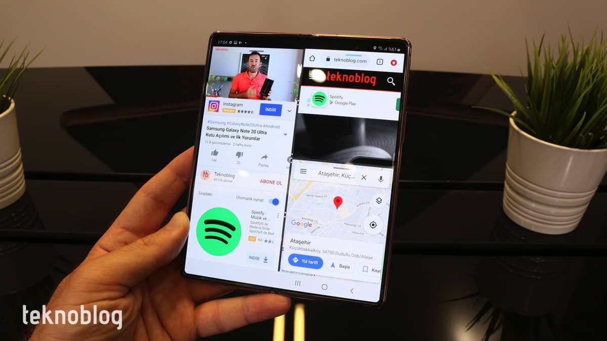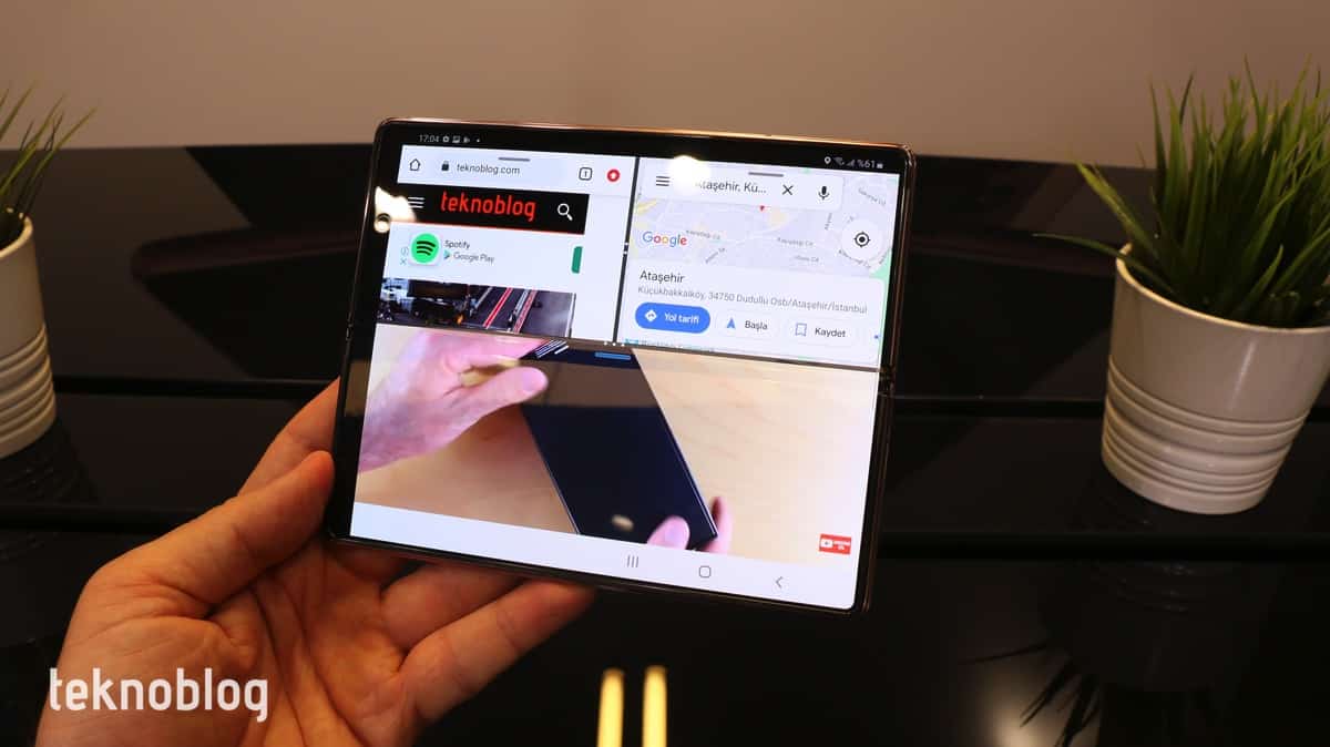 İçerideki donanım bileşenleri bakımından Galaxy Z Fold 2, 2020’nin ikinci yarısının amiral gemisi telefonlarının çizgisini tutturuyor. Üstelik Türkiye’de satışa çıkacak modelde bile Qualcomm’un en yeni amiral gemisi işlemcisi Snapdragon 865 Plus’ı göreceğiz. Bu işlemci oyun tarafında da iyi bir performans vadediyor. İncelemede oyun konusuna da değineceğiz, ancak deneyimlediğimiz süre boyunca dış ekranda açık olan uygulamanın içerideki katlanabilir ekranda devam ettirilmesinin, bu aradaki geçişin hızının iyi olduğunu gözlemledik. Aynı anda birden fazla uygulamayı ekranda, farklı pencerelerde açmayı sağlayan Çoklu Pencere görünümü de iyi şekilde çalışıyor. Uygulamaları yerleştirme, konumlarını değiştirme, ekran görüntülerini alma ve bunuları düzenleme gibi işlerde Galaxy Z Fold 2 akıcı görünüyor.