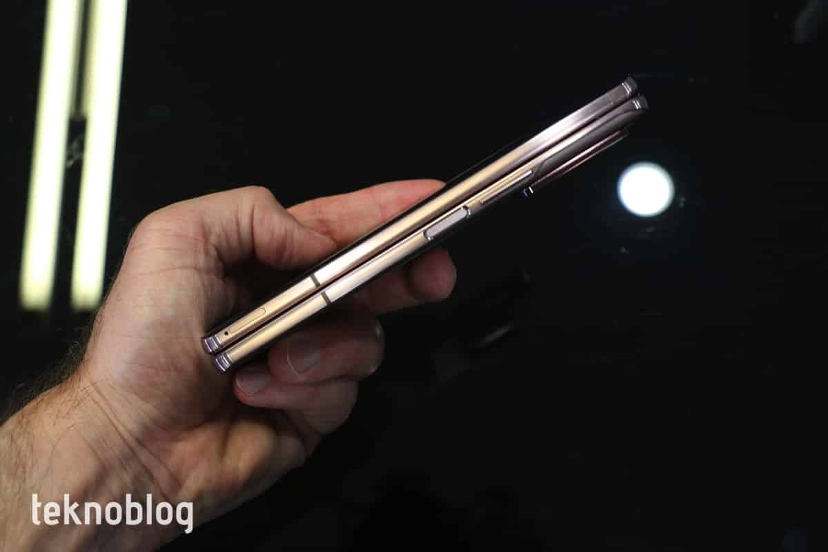 Malzeme kalitesi bakımından da Galaxy Note 20 Ultra ile aynı seviyede bir telefon var. En azından kapalı durumdayken bunun geçerli olduğunu söyleyebiliriz. Önde ve arkada Gorilla Glass camlar kullanılmış. Mistik bronz renkte arkadaki yüzey hafif pürüzlü ve sürtünmeli. Mistik siyah renkte ise daha parlak bir arka yüzey kullanılmış ve çizilmelere karşı daha hassas görünüyor. Bize sorsanız, tercihimiz Note 20 Ultra’da olduğu gibi mistik bronz olurdu.