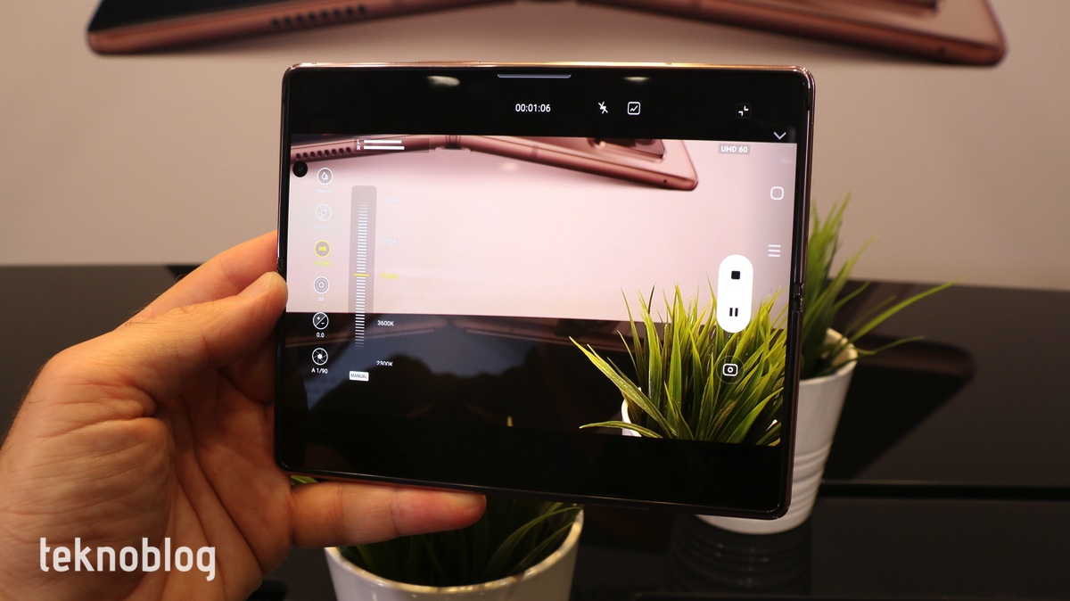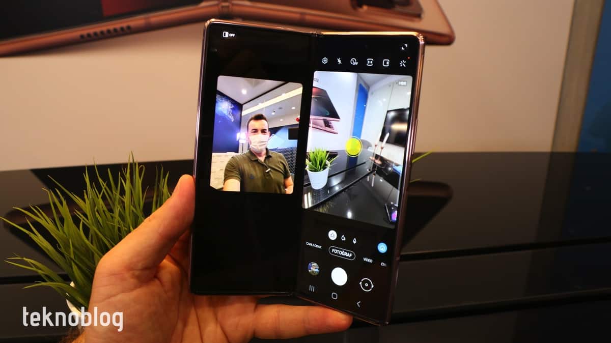 Tıpkı Z Flip’teki gibi, menteşeyi farklı açılarda durdurmak ve katlanabilir telefonu farklı biçimlere sokmak mümkün. Tüm bunların sayesinde farklı kullanım şekilleri ortaya çıkıyor. Örneğin yemek yerken Z Fold 2’yi hafif açılı şekilde koyarak ekranın sadece bir yarısında, yeteri kadar bir görüntüleme alanıyla video izleyebilirsiniz. Ya da selfie çekerken Z Fold 2’yi katlayıp bir yere yerleştirerek daha rahat biçimde selfie çekebilirsiniz. Video günlük tutanlar da tek başlarına çekim yaparken Samsung’un Flex mod olarak adlandırdığı farklı kullanım modlarından yararlanacaklardır.