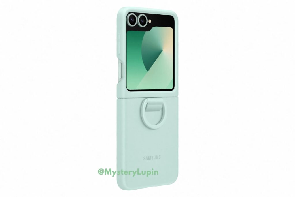 Resimlerde koyu mavi, gri ve yeşil renklerde sunulan bir anahtarlık kılıfla süslenmiş Galaxy Z Flip 6 gösteriliyor. Dikkat çekici bir şekilde, kamera halkaları önceki modele göre biraz daha belirgin görünüyor ve telefonun arkasıyla uyumlu renkte olup, telefonun görünümüne kişilikli bir dokunuş katıyor. Bunun dışında telefonun tasarımında geçen yıla göre bir değişikliğin olmadığı söylenebilir.