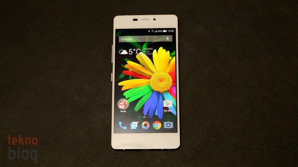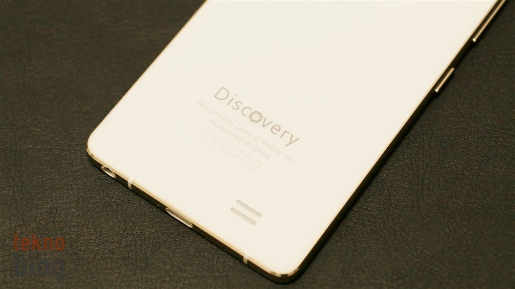 139.8 x 67.5 x 5.15 mm.’lik boyutlara ve sadece 98 gr. ağırlığa sahip gövdesiyle Discovery Air epey çekici görünüyor. Telefonun etrafını çevreleyen metal çerçevenin ön ve arkadaki cam plakalarla buluştuğu çizgiler de belli bir işçilikten geçmiş. Ön ve arka camların yüzeyleri, tıpkı Sony Xperia Z3’teki gibi kaygan, bu da telefonun elinizden kayıp gitmesinin söz konusu olabileceği anlamına geliyor, aman dikkat! Xperia Z3 demişken, General Mobile Discovery Air, tasarım anlamında Sony’nin amiral gemisi akıllı telefonundan da bazı esintiler taşıyor gibi görünüyor.