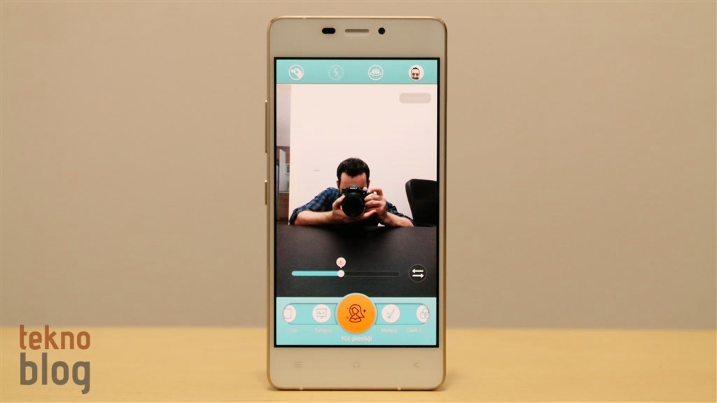 Önde yer alan 5 megapiksel selfie kamerası ortalamanın üstünde sonuçlar sergiliyor. Yeteri kadar keskin ve aydınlık selfie fotoğraflar çekmenize olanak sağlayacak bu kamera için Sihirli Kamera adında özel bir uygulama da sunuluyor. Sihirli Kamera uygulaması farklı filtreler veya araçlar kullanarak selfie fotoğraflarınızı yaratıcı ve eğlenceli hâle getirmenize olanak sağlıyor.