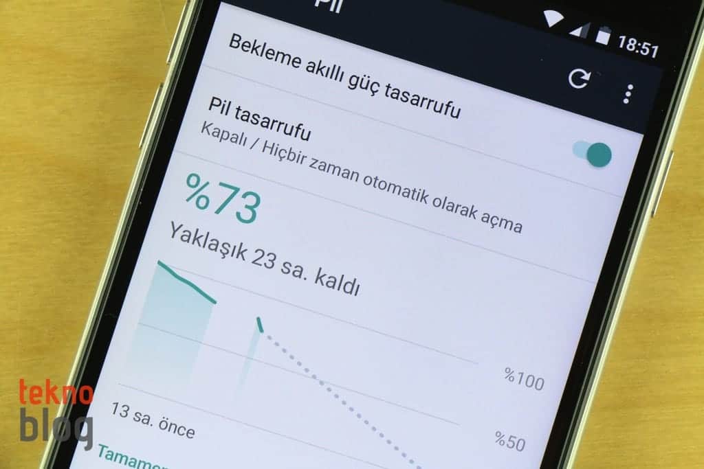 5 inç ekranı nedeniyle nispeten daha küçük bir yüzey alanına sahip olsa da, General Mobile’ın GM 6’ya 3000 mAh gibi yüksek kapasiteli bir pili sığdırdığını görüyoruz. Üstelik bunu 8.6 mm. gibi makul kalınlık sınırları içinde kalarak gerçekleştiriyor. 5 inç 720p gibi düşük profilli bir ekranın ve dört çekirdekli MediaTek işlemci gibi, yüksek güç tüketiminde bulunmayan bir işlemcinin varlığı sayesinde, GM 6 iyi bir pil performansı sunuyor. Uygun koşullarda ve fazla yoğun olmayan bir kullanımda bu telefon, tek şarjla iki güne varan çalışma imkanını yakalayacaktır.