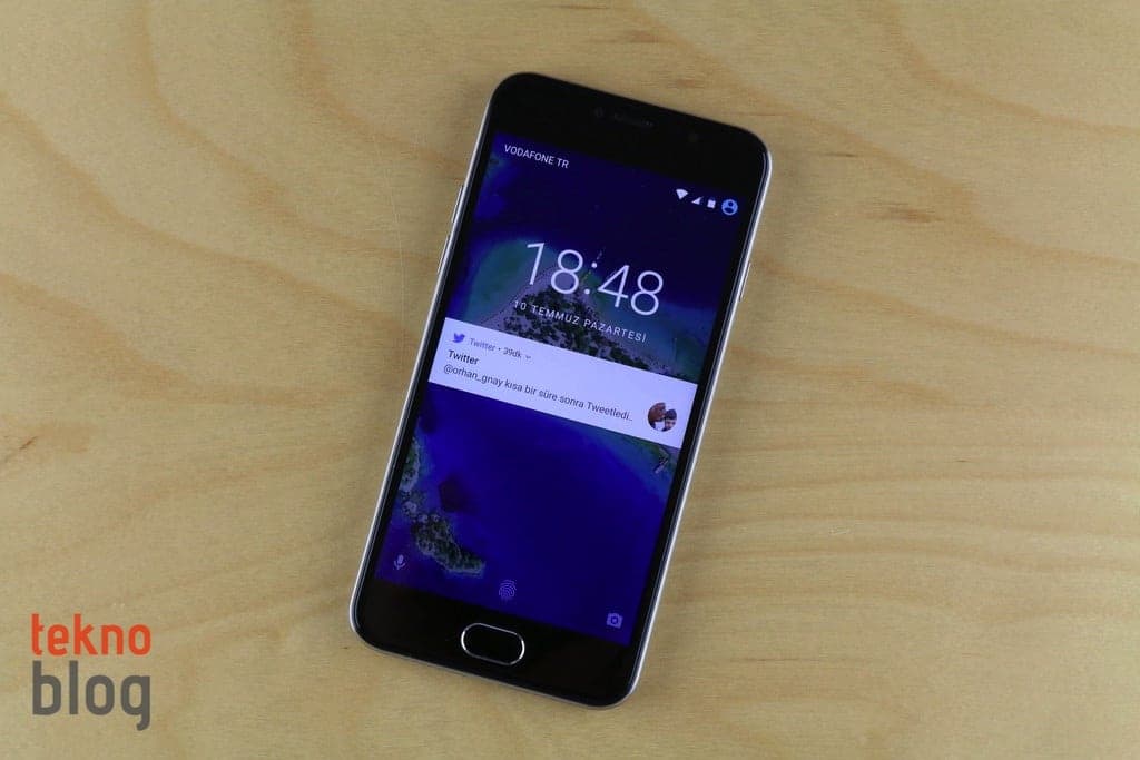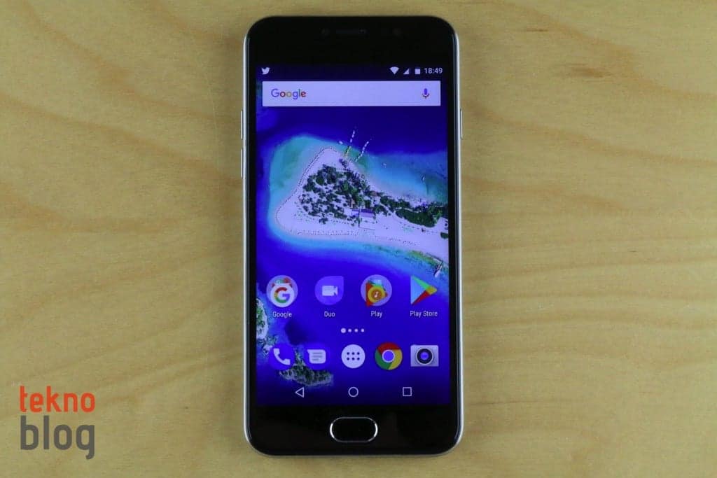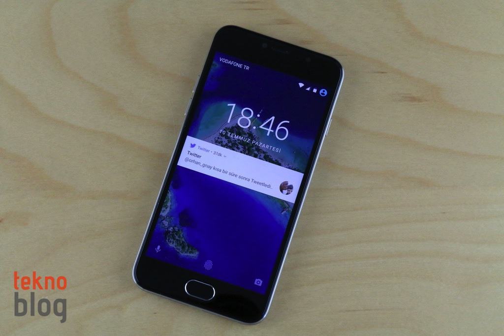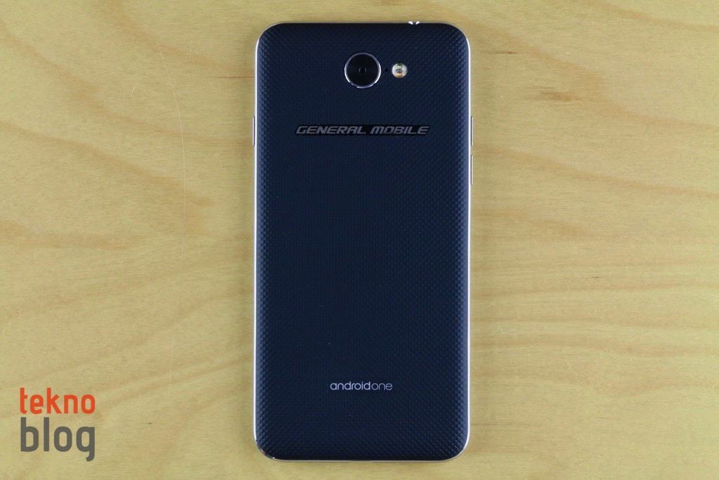 Ekranın altında parmak izi okuyucusunu da bünyesinde barındıran ana ekran tuşunu görüyoruz. Bu tuşun varlığına rağmen General Mobile ekran üstü Android kontrollerine de yer veriyor. Ekranın üst tarafında ahize hoparlörü, 5 megapiksel kamera ve sensör yer alıyor. Üst kenarda 3.5mm kulaklık jakı, alt kenarda microUSB portu ve hoparlör bulunuyor. Soldaki ses tuşları ve sağdaki güç butonu tek elle tutulduğunda zahmetsizce kullanılabilecek noktalara yerleştirilmiş.