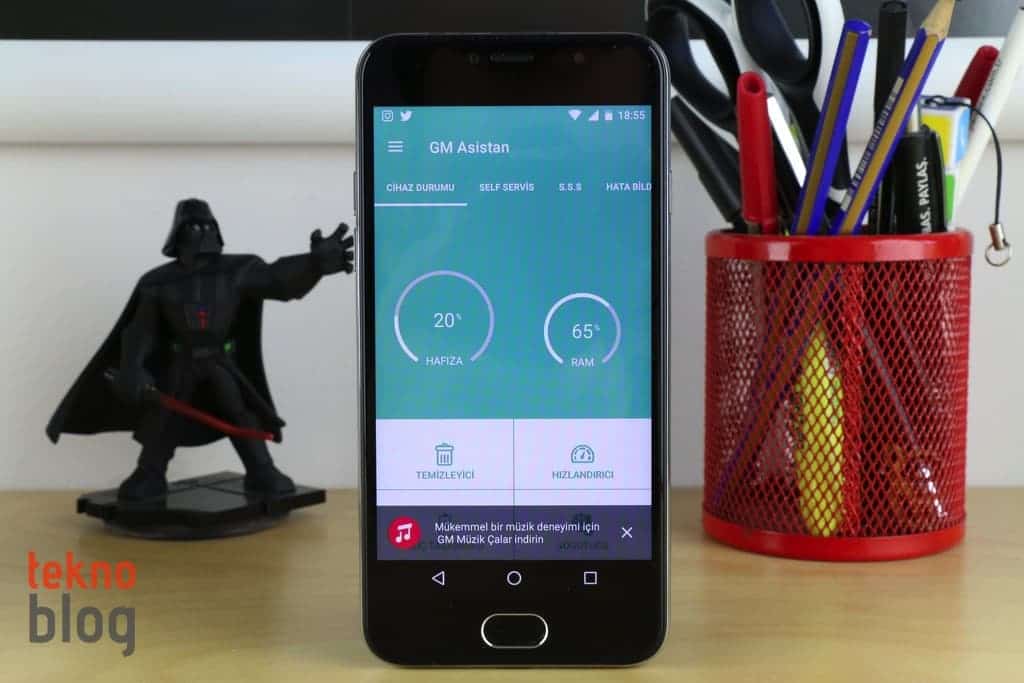 Bunun dışında General Mobile’ın da sunduğu çeşitli uygulamalar da mevcut. Örneğin GM Asistan cihaz yönetici uygulaması ile hafıza, RAM durumunu kontrol edebilir, telefonu hızlandırabilirsiniz. General Mobile’ın Google Play’de de ücretsiz olarak sunduğu Dosya Yöneticisi ise kullanışlı arayüzü sayesinde GM 6 sahiplerinin işine fazlasıyla yarayacaktır. Bunun dışında General Mobile, Google Fotoğraflar üzerinden sunulan sınırsız fotoğraf ve video depolama özelliğine de dikkat çekiyor. GM 6 ile çektiğiniz fotoğrafları ve videoları Google’ın Fotoğraflar servisinde saklayabilir, böylelikle telefonun dahili hafızasının sürekli yeni fotoğraflar ve videolar için boş tutulmasını sağlayabilirsiniz. Benzer şekilde Google Drive’da da dosyalarınızı yedeklemeniz mümkün. Bunun dışında Google’ın Gboard klavye uygulaması da GM 6’nın varsayılan sanal klavye seçeneği olarak sunuluyor. Bu klavye ile doğrudan Google’da arama yapabilirsiniz.