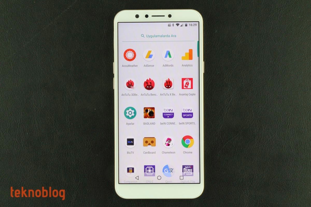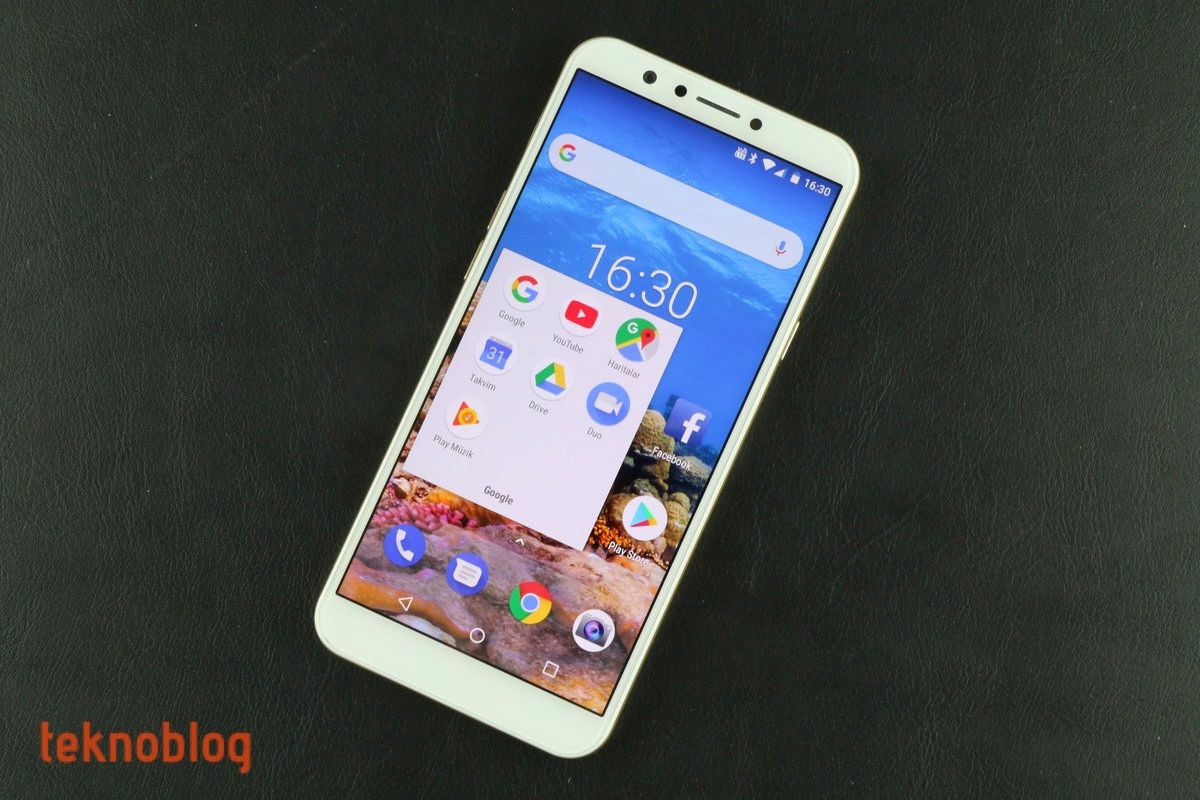 GM 8’in 5.7 inç ekranı 18:9 görüntü oranına sahip. Ekranın etrafını da fazla geniş olmayan bir çerçeve sarıyor. Böylelikle Android One telefonunun yüzey alanı, 5.7 inçlik büyük ekranlı bir telefona göre daha düşük oluyor. İnce profiliyle birleştirildiğinde, GM 8’in ergonomisi epey yükseliyor, telefonu tek elle rahat şekilde tutup kullanabilirsiniz. Tek elle kullanımda ekranın üst kısmına erişim biraz zahmetli olsa da, telefonu avuç içinde hareket ettirebilerek ekranın her yerine rahatlıkla erişebilirsiniz.