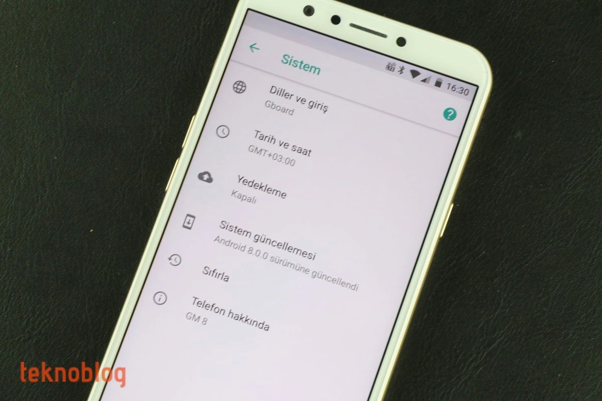 Türkiye’de Android One projesinin başlangıcını yapan ve bunu birkaç yıldır başarıyla uygulayan General Mobile, GM 8’de de Google ile var olan iş birliğini sürdürüyor. GM 8 de bir Android One telefonu. Bu, telefonun saf Android arayüzüyle geldiğini, Google’ın sunduğu güncellemeleri de hızlı biçimde aldığını gösteriyor. İncelemeyi hazırladığımız sırada kontrol ettiğimizde, General Mobile GM 8’de Android 8.0.0 Oreo sürümü çalışıyordu. Android 8.1 Oreo şu anda en son Android sürümü konumunda. Ancak henüz GM 8’e gelmedi. Yine de, aylık olarak yayınlanan Android güvenlik güncellemeleri GM 8’e düzenli biçimde, gecikmeden ulaştırılıyor. Bu da önemli sayılır.