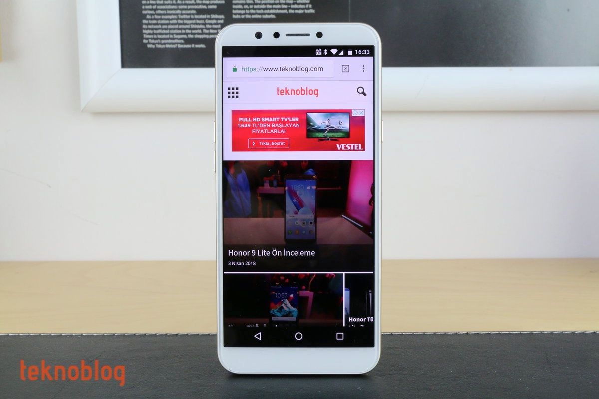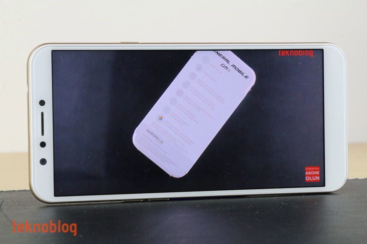 General Mobile GM 8’in 5.7 inç ekranı Incell IPS teknolojisine sahip. Ekran yeterli parlaklığa ve geniş görüş açılarına sahip. Parlak güneş ışığı altında da ekran yeterli görüş sunuyor. Ekranın çözünürlüğü 720 x 1440 ile sınırlı tutulmuş. Bu da nispeten daha düşük bir piksel yoğunluğu demek, ancak pratikte çözünürlük bakımından herhangi bir sıkıntı yaşamadık. 720p ekran, hem metin görüntülemede hem de videoları göstermede ihtiyaçları karşılıyor. 18:9 görüntü oranı nedeniyle ince ve uzun bir ekran formu elde ediliyor. Videoları görüntülerken kenarlarda siyah çubuklar görüyoruz. Ancak yakınlaştırma yaparak videoyu, kenarlarından kayıplarla ekrana oturtabilirsiniz. Öte yandan büyük alanı sayesinde bu ekran bir şeyler okurken, fotoğraflara bakarken, video izlerken rahat ettiriyor.