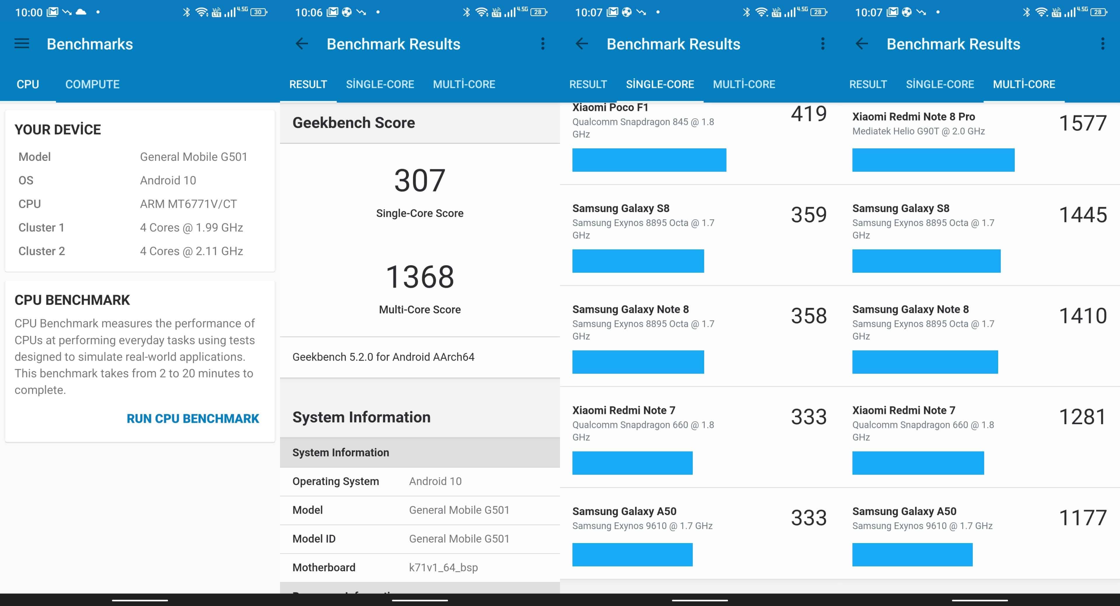 İşlemci tarafında bu telefonun MediaTek Helio P70 yonga set barındırdığını görüyoruz. 12nm tabanlı bu işlemci sekiz çekirdek barındırıyor, bunlardan dördü yüksek performans gerektiren işler için tasarlanmış Cortex-A73, diğerleriyse güç tüketiminde tasarrufu ön planda tutan Cortex-A53 CPU çekirdekleri. Ayrıca ARM tasarımı Mali-G72 GPU da mevcut. GeekBench 5 benchmark testinde bu işlemcili telefon geçen yılın ilk yarısında gördüğümüz Snapdragon 660 işlemcili Redmi Note 7’ye yakın sonuçlar verdi. Genel olarak günlük işler için yeterli bir performans sunuyor. Kullanıcı arayüzünde gezinti de akıcı sayılır. Aynı zamanda web sitelerinde yukarı aşağı kaydırmalarda da gözle görülür takılma veya sayfaların yüklenmesinde gecikme yok. Yüksek bir oyun performansı beklemeyin, ancak PUBG Mobile’ı uygun ayarları seçerek akıcı şekilde oynamak mümkün oluyor.