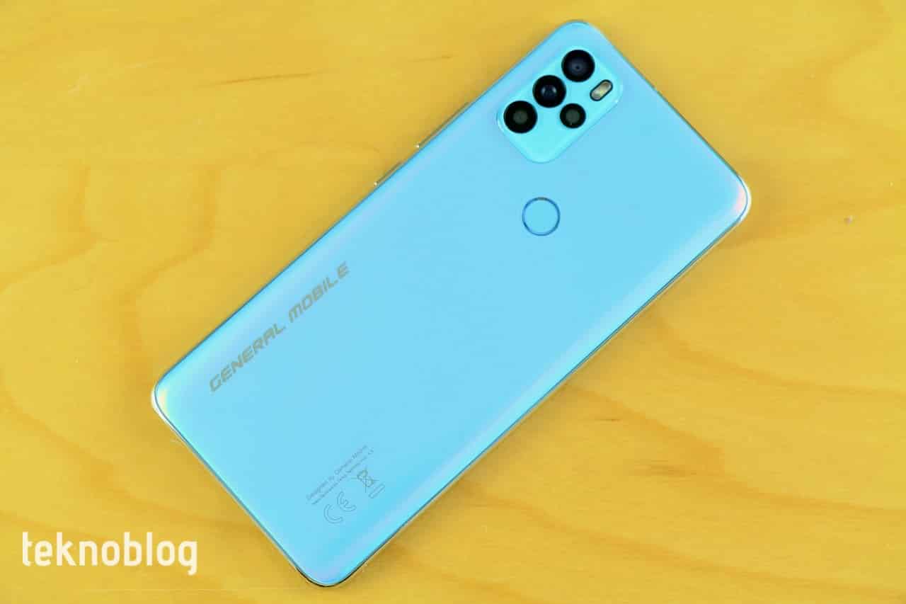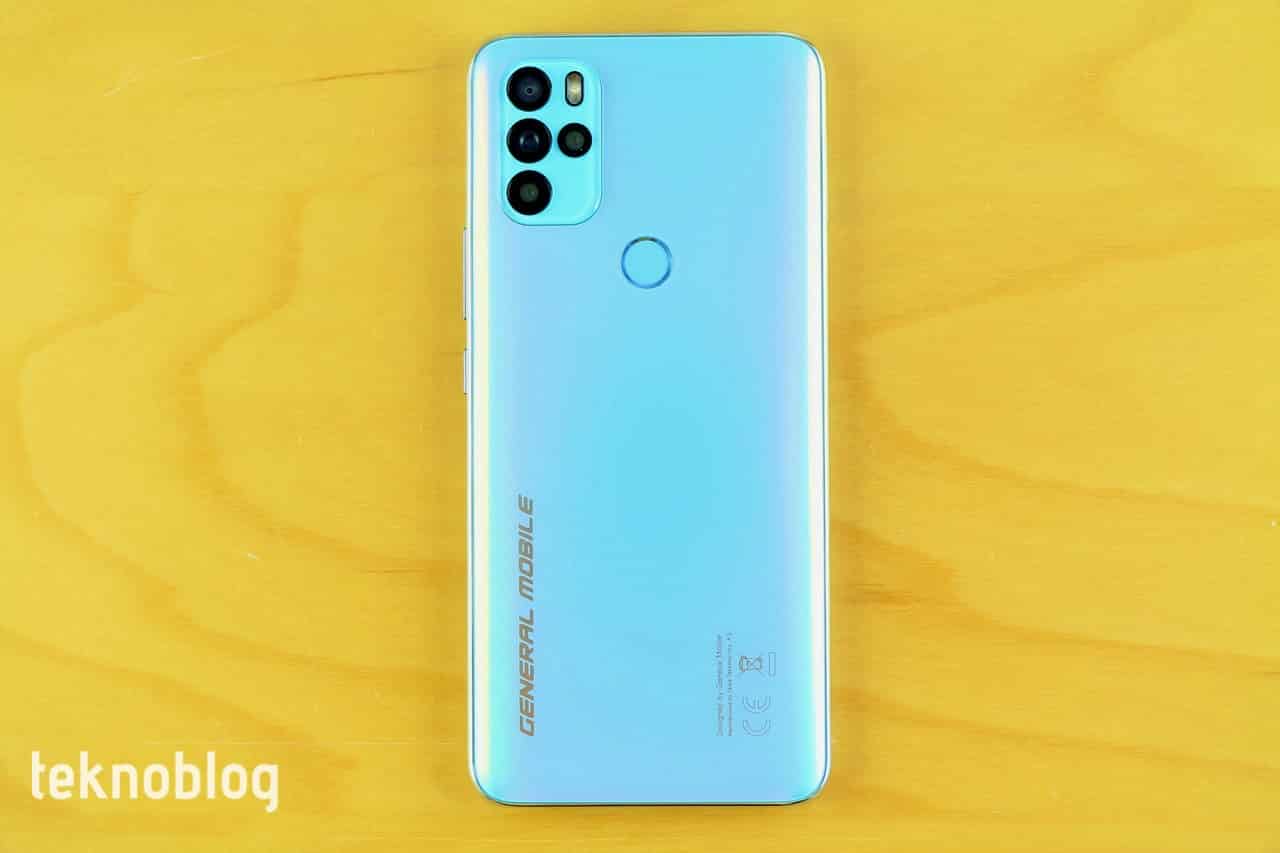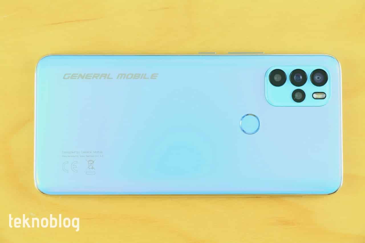 Arka panelin sol üst köşesinde dikdörtgen kamera adası yer alıyor. Bu ada özelliklerine daha sonra değineceğimiz dört kameraya ve LED flaşa ev sahipliği yapıyor. Arka panelin orta kısmında ise yuvarlak parmak izi tarayıcısı bulunuyor. Bu tarayıcıya her iki elin işaret parmaklarıyla rahatlıkla erişilebiliyor. Arka panelin tamamlayıcı unsuru ise General Mobile logosu oluyor.