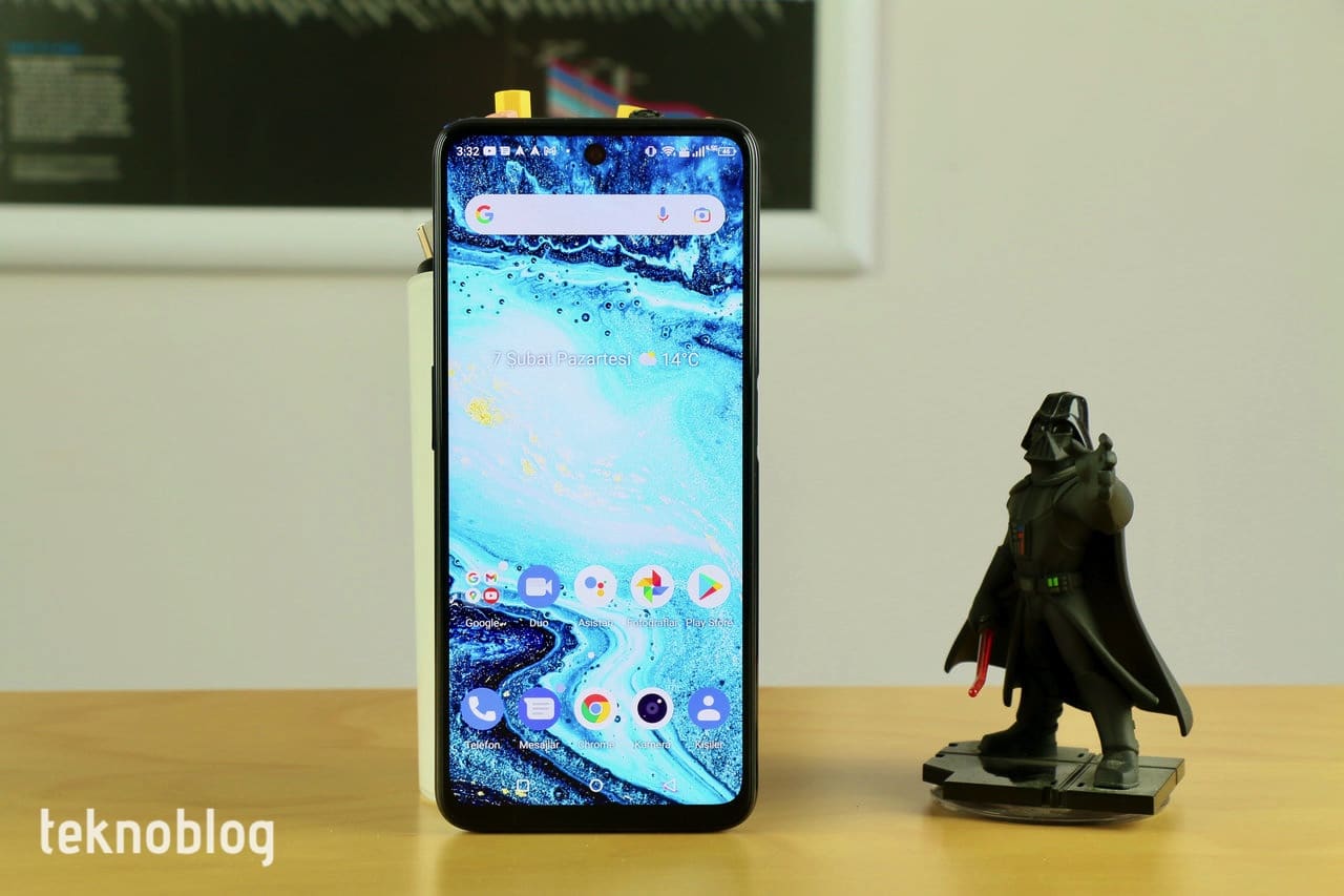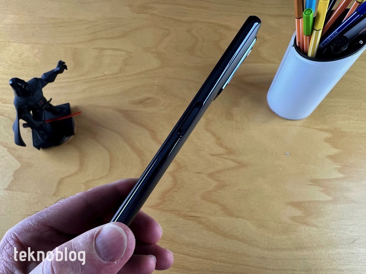 Telefonun 9.1 milimetrelik bir kalınlığı var. Bu değer akıllı telefon ortalamalarının biraz üstünde, ancak arka yüzün kenarlara doğru kavis yapması telefonun daha ince hissedilmesini sağlıyor. Ayrıca kavramayı da kolaylaştırıyor. 6.78 inçlik ekranın etrafını epey ince bir çerçeve sarıyor, sadece alt kenarda biraz daha kalın bir çene alanı mevcut. Sonuç olarak yüzde 91.4 gibi, ortalamaların üstünde bir ekran gövde oranına ulaşılıyor. Bu da telefonun, boyutlarına göre ergonomik olmasına yardımcı olan bir unsur. 213 gram ağırlığının ise, bu derecede büyük ekranlı telefonların ortalamalarında gezindiğini söyleyebiliriz.