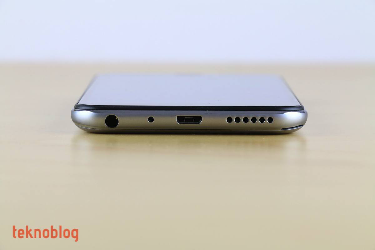 Telefonun üst kenarı boş bırakılmış. Alt kenarda ise soldan sağa doğru sırasıyla 3.5 mm. kulaklık jakı, mikrofon, micro USB girişi ve hoparlör ızgarası yer alıyor. Hoparlörden çıkan ses güçlü olsa da, yüksek seviyelerde ses kalitesinin aşağıya indiğini belirtmekte fayda var.