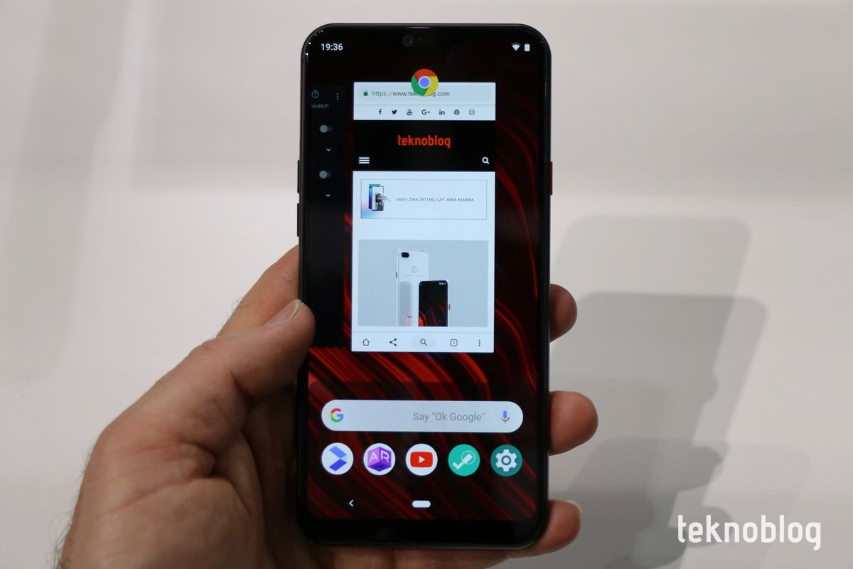 Telefonda Android 9 Pie geliyor. GM 9 Plus, bir Android One telefonu olmanın avantajlarını kullanarak kullanıcılara en güncel Android sürümünü ve düzenli güvenlik güncelleştirmelerini sunacaktır. Aynı zamanda saf Android arayüzünü de unutmamak gerekiyor. Uzay grisi renkli telefona siyah tonlarında duvar kağıdı epey yakışmış. Google’ın Pixel telefonlarında gördüğümüz tarzda bir kullanıcı arayüzü var. Google uygulamaları ön planda. Bu arada General Mobile, önceki telefonlarında da bulunan GM Asistan uygulamasına Google Asistan’ı entegre ederek farklı bir asistan deneyimi sunmayı hedefliyor. Ayrıca Google Asistan’ı da doğrudan ana ekran kısayoluna basılı tutarak kullanabilirsiniz. General Mobile’ın AR uygulaması da mevcut durumda. Lansman sonrasında test ettiğimiz telefonda bu uygulamayı kullanmamız mümkün olmasa da, telefon piyasaya çıktığında hazır ve nazır şekilde kullanıcıları bekleyeceği söylendi.