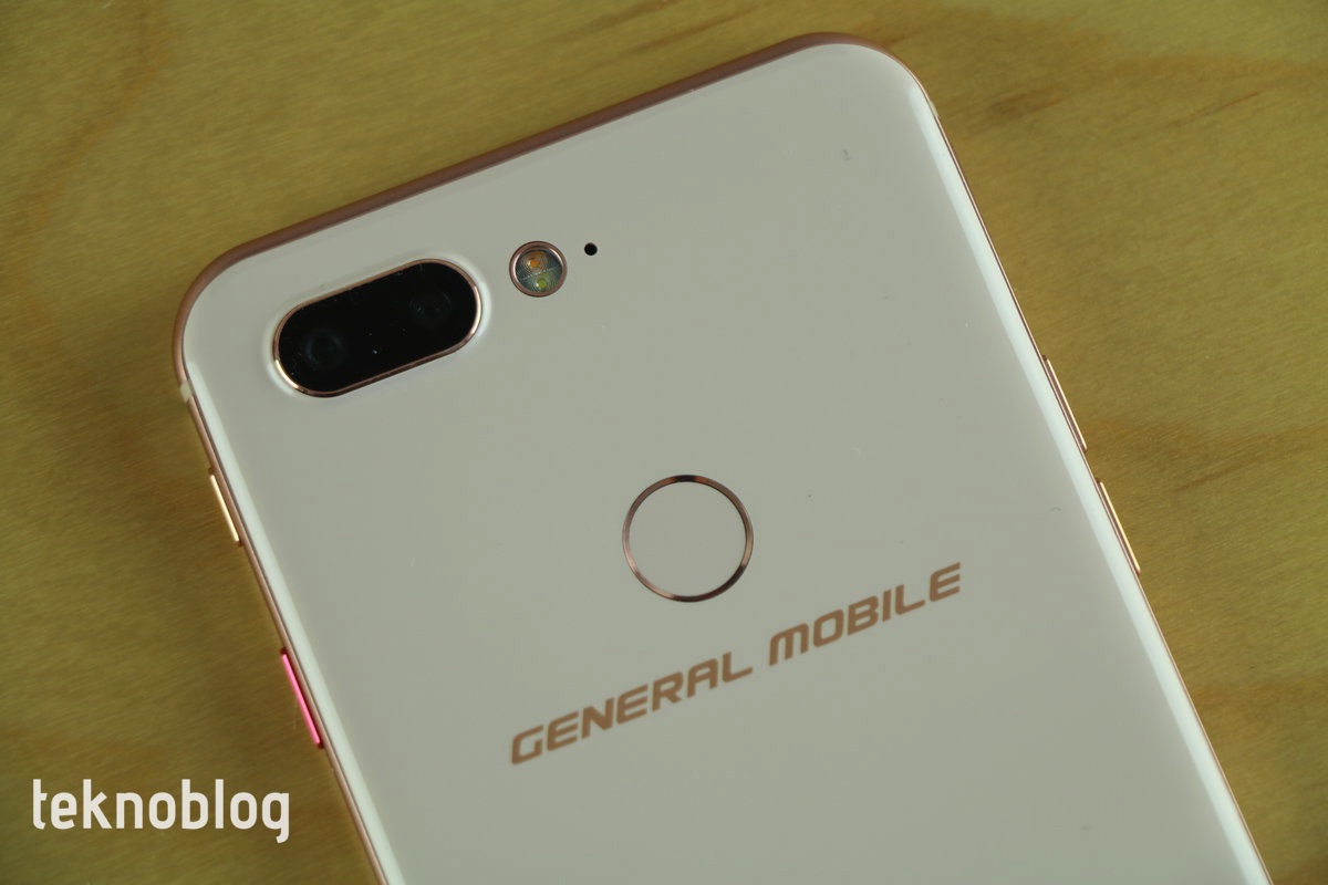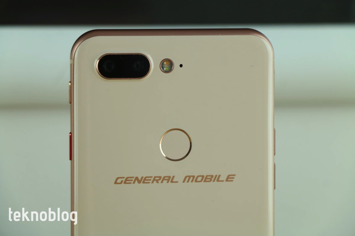 Arka tarafta dikkat çeken ilk unsur, sol üst köşeye yerleştirilmiş çift kamera oluyor. Bunun yanında çift renkli flaş ve mikrofon var. Parmak izi okuyucusu sağ veya sol elle tutuşta işaret parmaklarının rahatlıkla erişebileceği noktada bulunuyor. Aynı zamanda hızlı şekilde işliyor. Bunun hemen altında da General Mobile logosunu görüyoruz. Arka yüzeyin sürtünmesi yüksek, telefonun kullanım sırasında elden kayıp gitmesini önlüyor. Parmak izi ve kiri de fazla tutmuyor. Aynı zamanda çiziklere karşı da direnci yüksek gibi görünüyor.