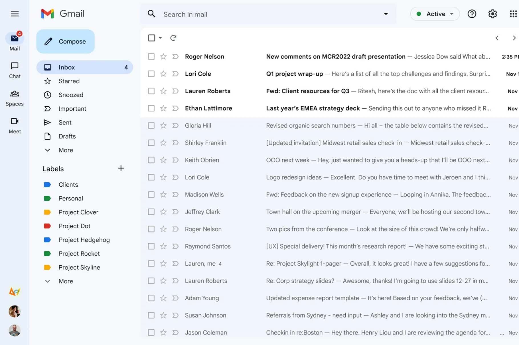 Gmail veya diğerleri olmadan, ekranda yalnızca belirli bir iletişim aracını görmek istiyorsanız, bunu yapmak biraz daha kolay hâle geliyor. Çünkü Sohbet ve diğerleri artık gelen kutularınızın ve etiketlerinizin altında listelenmiyor.