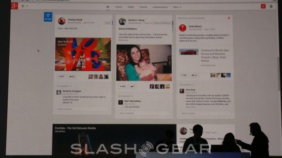 Google+ yavaş fakat kendinden emin adımlarla tüm Google servislerinin merkezine yürümeye devam ediyor. Kullanıcılar bundan böyle Google Play ve YouTube üzerinde yaptıkları yorumları sosyal hesaplarına bağlayabilecek ve tüm Google Games davetiyeleri Google+ üzerinden iletilecek. Ana sayfada yapılan değişikliklere ek olarak tasarım dilindeki değişiklikler de göze çarpıyor. Yenilenmiş ana akışın tüm platformlarda aynı görünümde olacağı belirtilirken, bu ana akışın ”tasarım ve derinlik” odaklı olduğunun altı çizildi. Google’ın tasarıma odaklı olmaktan kastettiği yeniliğin ise Google’ın kart stili tasarımının Google+’a taşınması olduğunu söylemek mümkün. Servise eklenen bir diğer yeni özellik ise artık 8 megapiksel çözünürlüğündeki fotoğrafların yüklenmesine izin verilmesi.