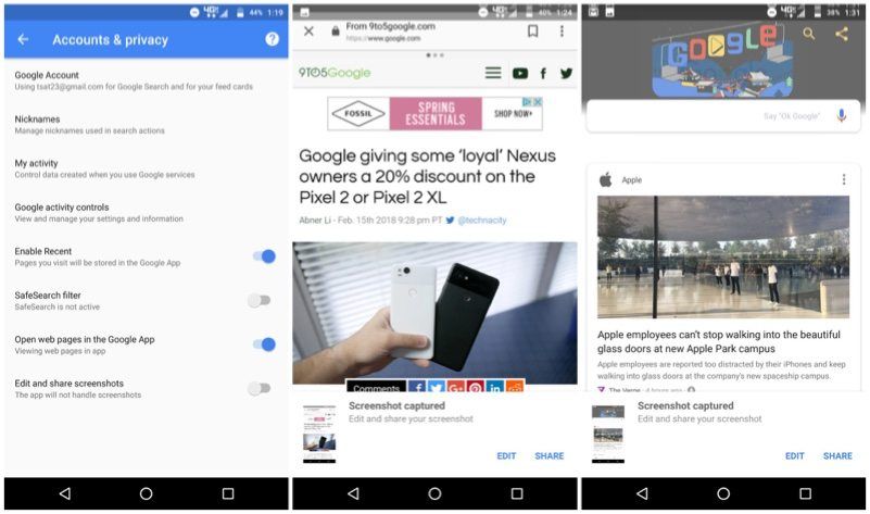 Bu izin verildikten sonra ekran görüntüsü alındığında Google uygulaması görüntünün ön izlemesini ekrana getirecek. Söz konusu ön izleme üzerinden ekran görüntüsü düzenlenebilecek veya olduğu gibi paylaşılabilecek.