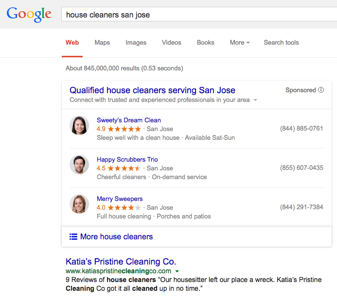 Google, kullanıcılarının tesisatçı, çilingir, temizlikçi gibi ev servisi sağlayan kişilere ulaşmasını kolaylaştırmak için kolları sıvadı. Yeni bir arama reklamı türünü faaliyete geçiren şirket, kullanıcılarına ev servisleriyle ilgili yaptıkları aramaların en üstünde aradıkları hizmeti veren iş yerlerini listeli olarak gösterecek.