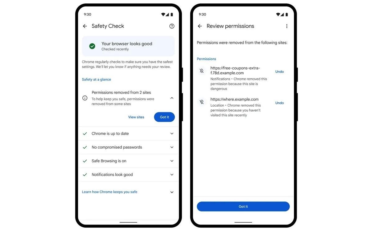 Yeni Güvenlik Denetimi sadece bildirim izinlerini iptal etmekle kalmayacak, aynı zamanda ziyaret etmediğiniz sitelerden gelen bildirim taleplerini de otomatik olarak devre dışı bırakacak. Ayrıca, güvenlik sorunları olduğunda sizi uyararak dikkat etmeniz gereken konular hakkında bilgilendirecek.