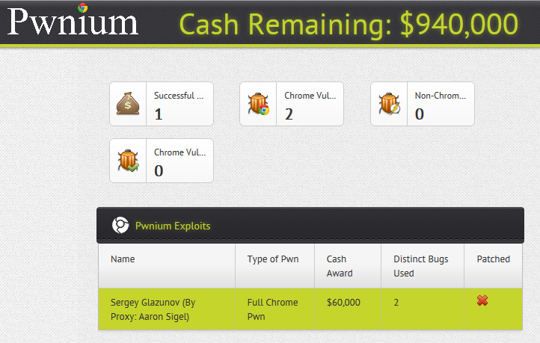 Google, Chrome’un CanSecWest Pwnium yarışmasında kırılması üzerine vakit kaybetmeden güvenlik açığını ortadan kaldırmak için çalışmalara başladı. Yarışmada Sergey Glazunov tarafından ortaya çıkarılan açıklar Google tarafından ivedilikle devredışı bırakıldı.